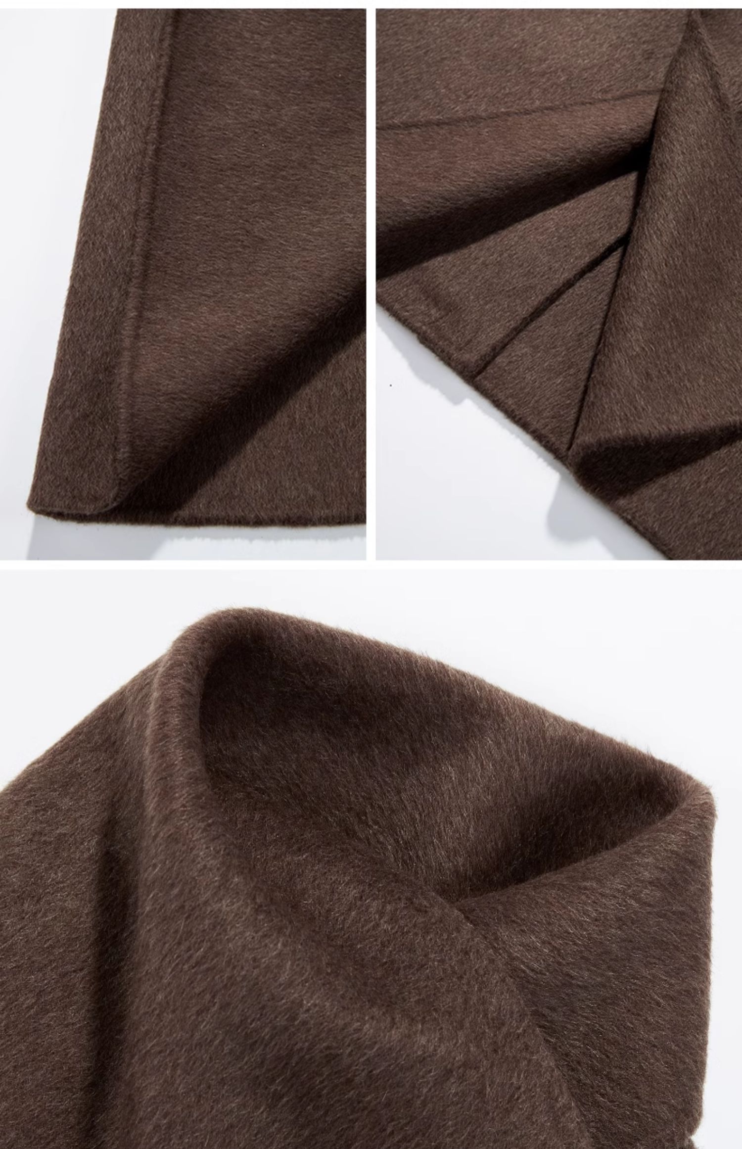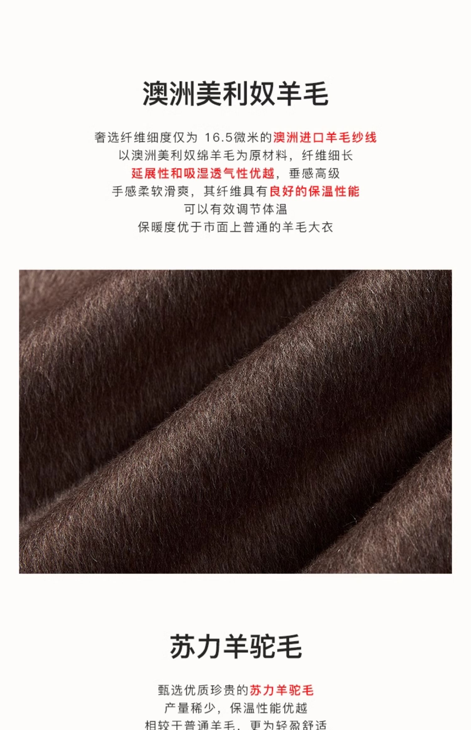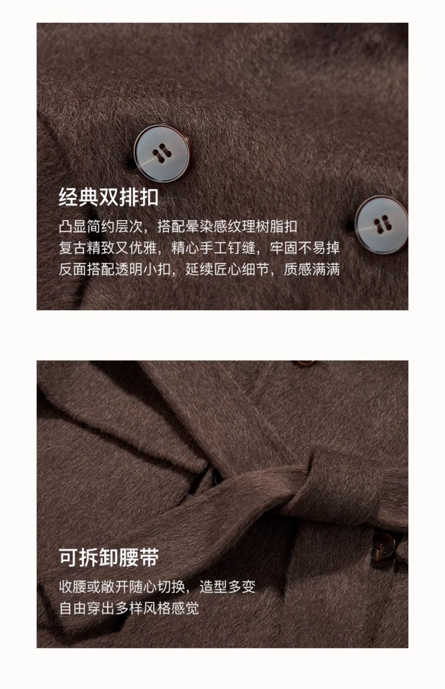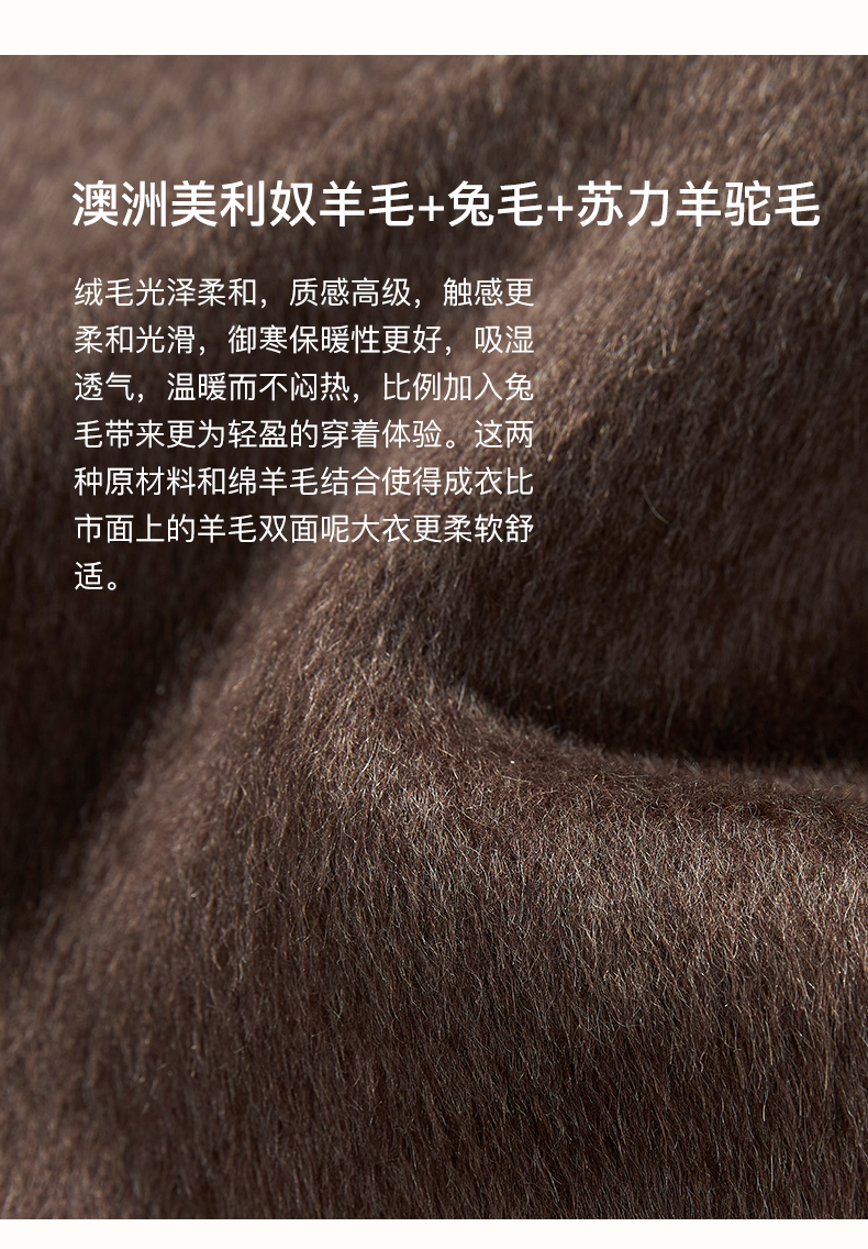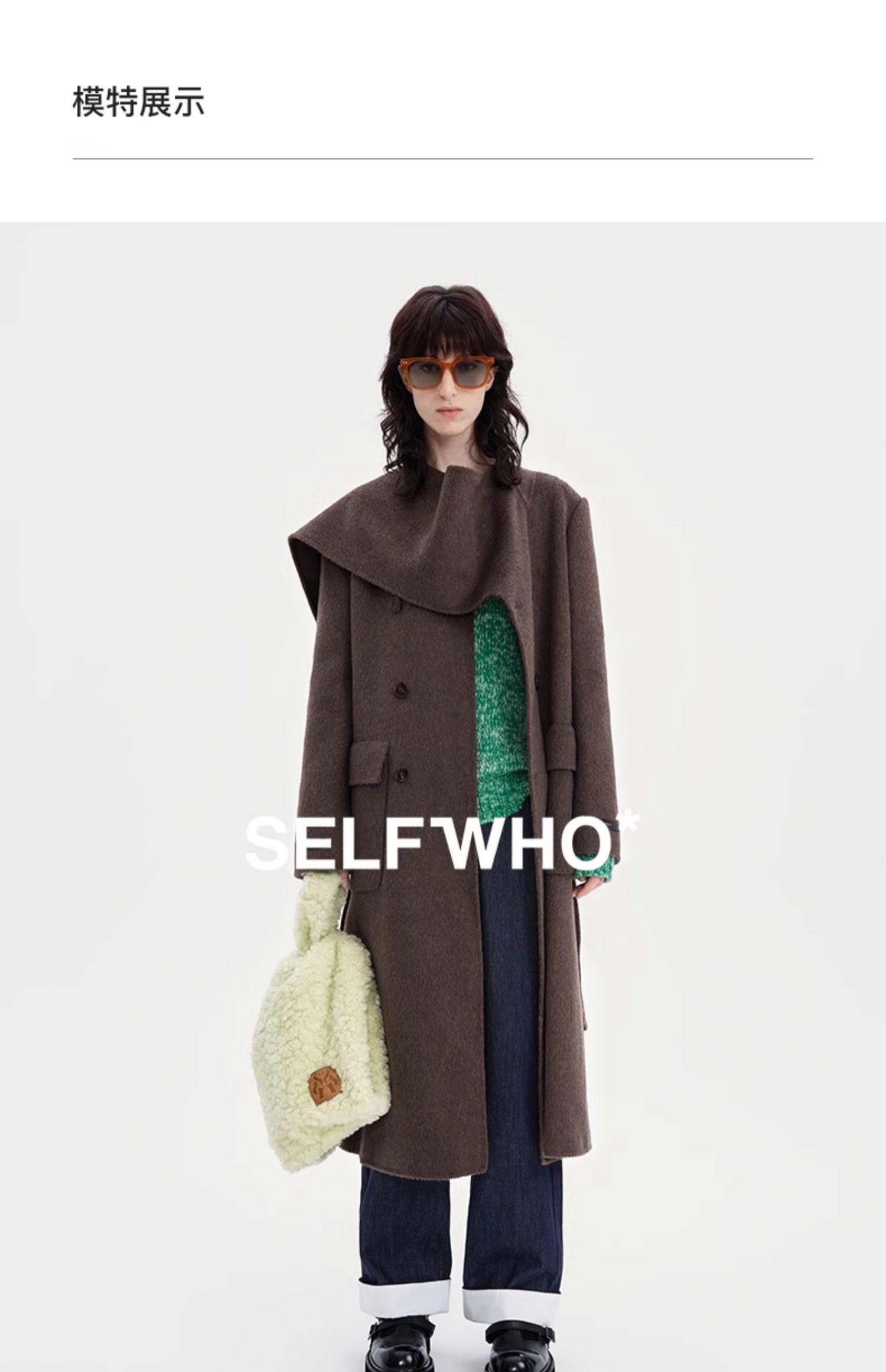 SELFWHO咖色澳洲进口绵羊毛苏力羊驼毛围巾领双面呢大衣女冬外套