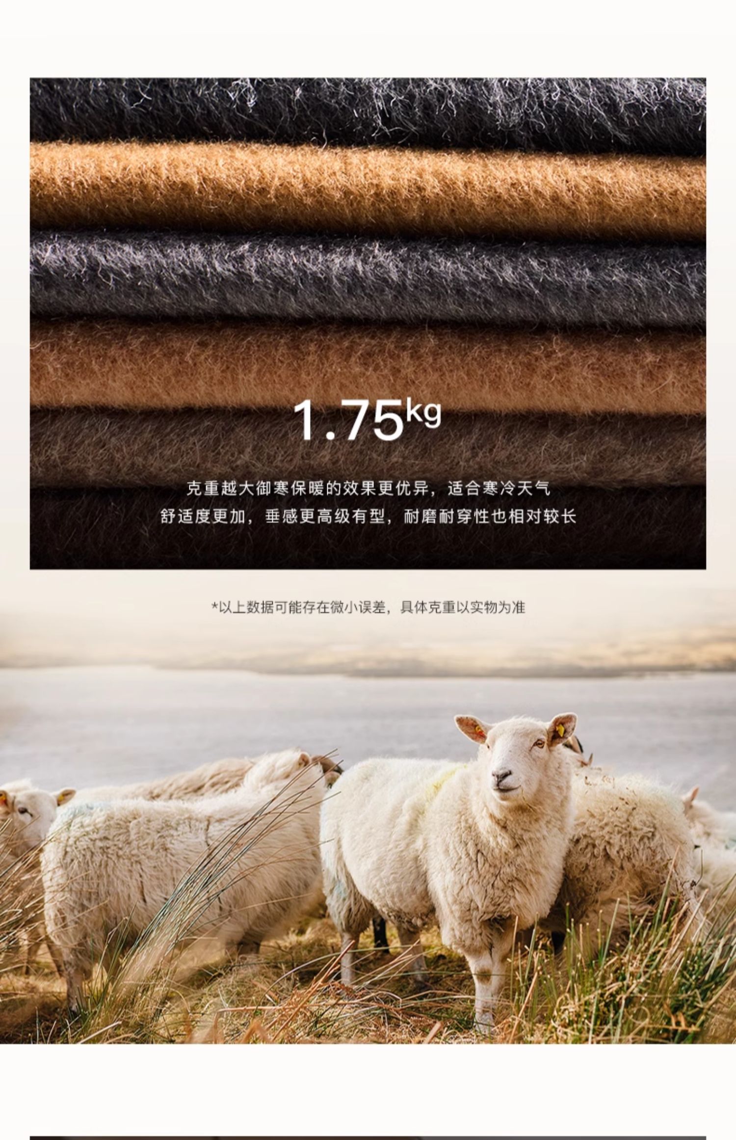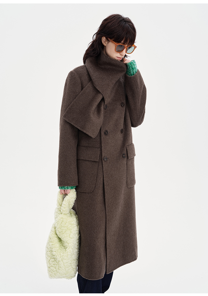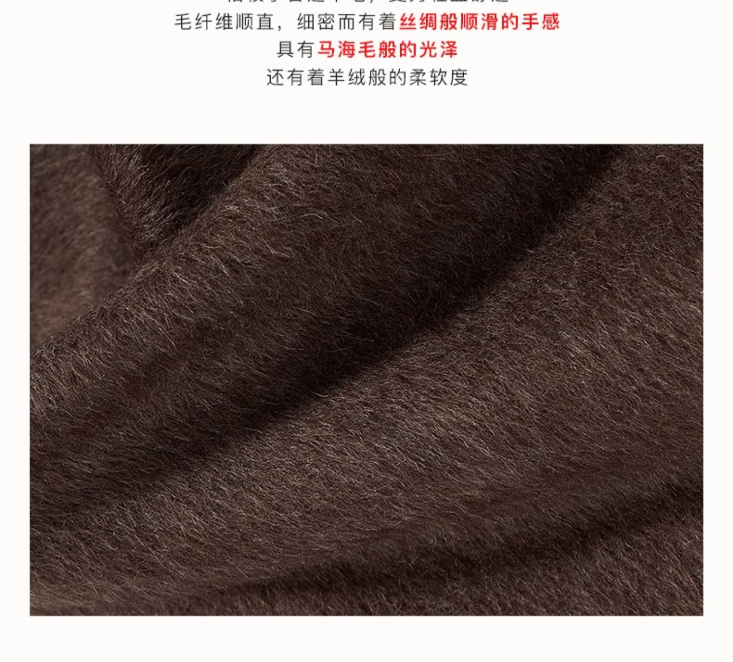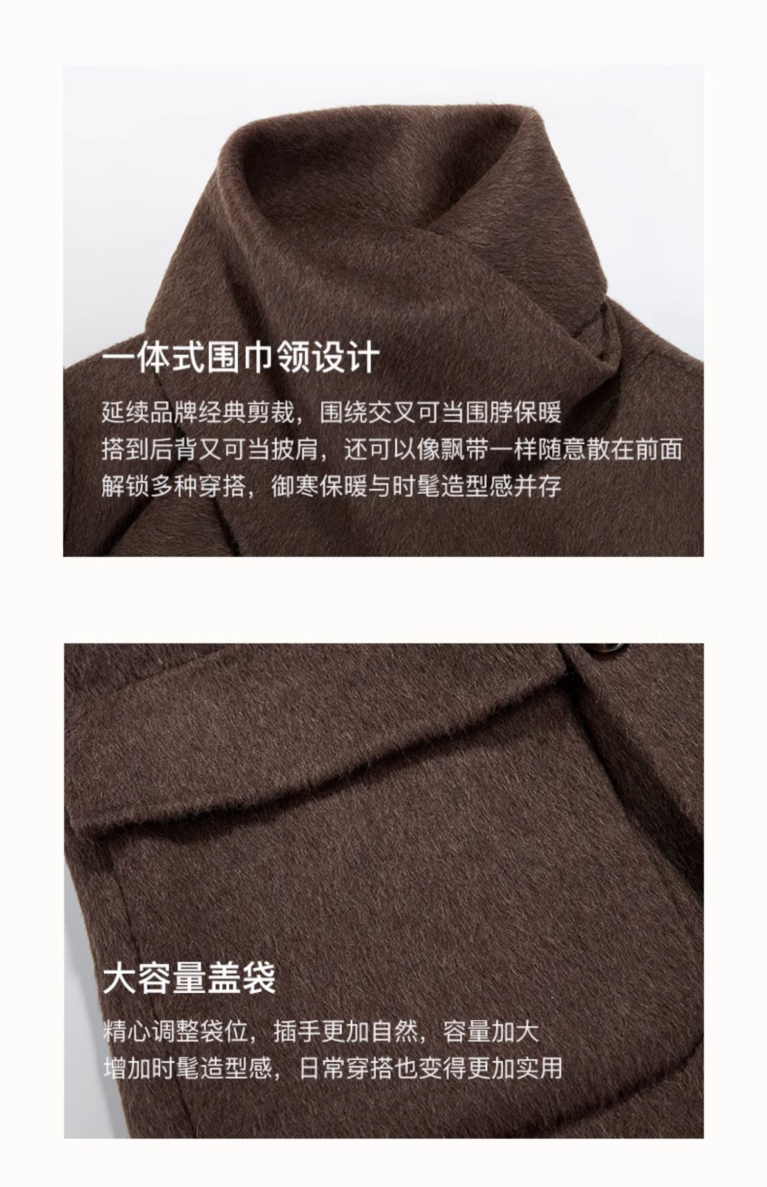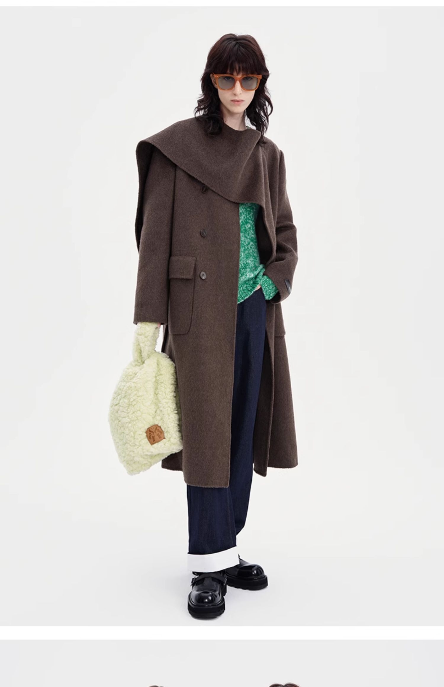 SELFWHO咖色澳洲进口绵羊毛苏力羊驼毛围巾领双面呢大衣女冬外套