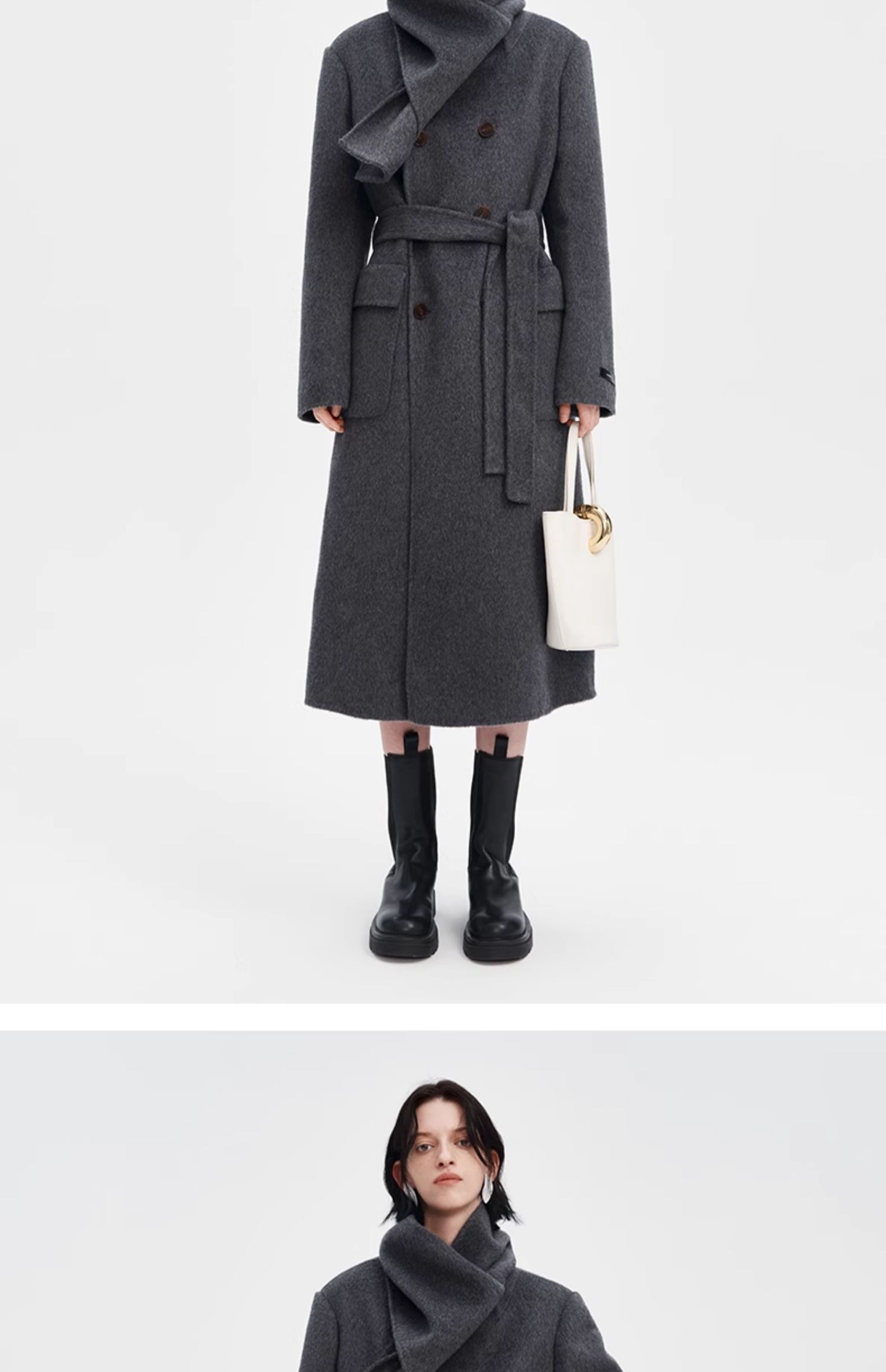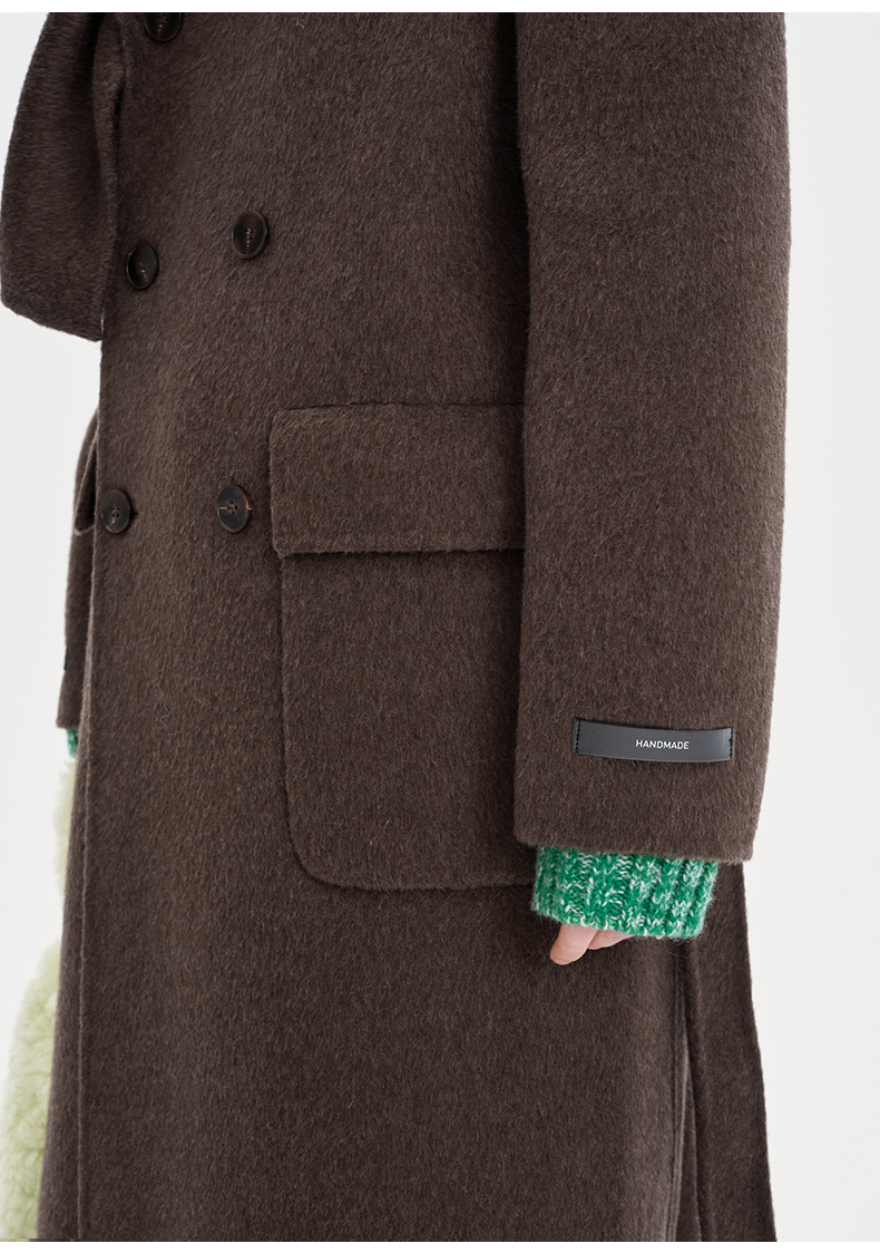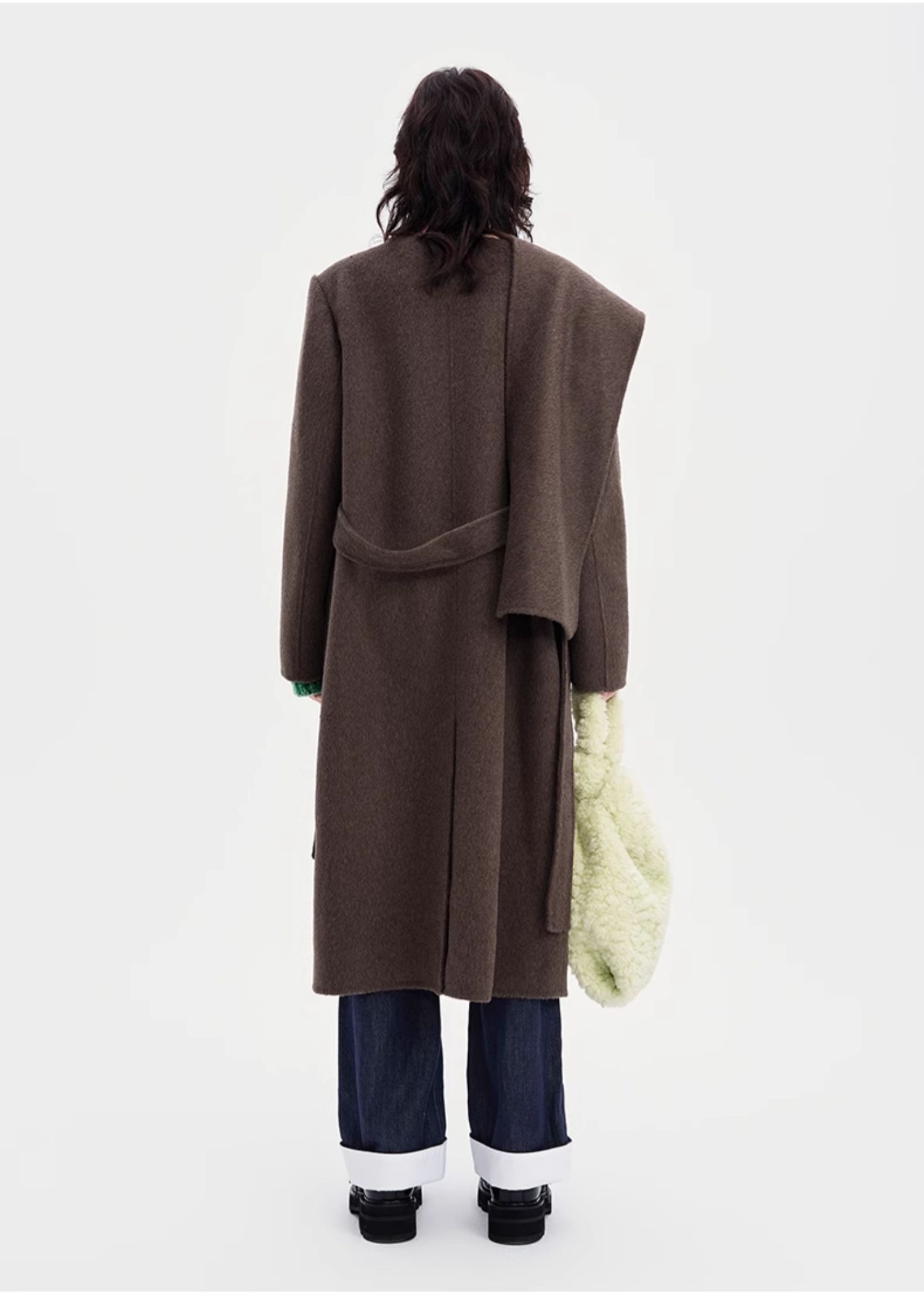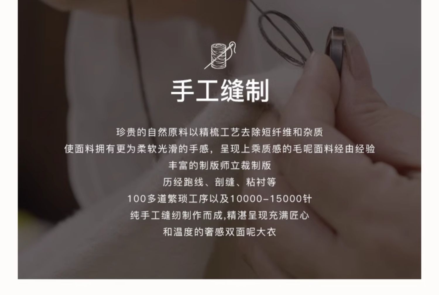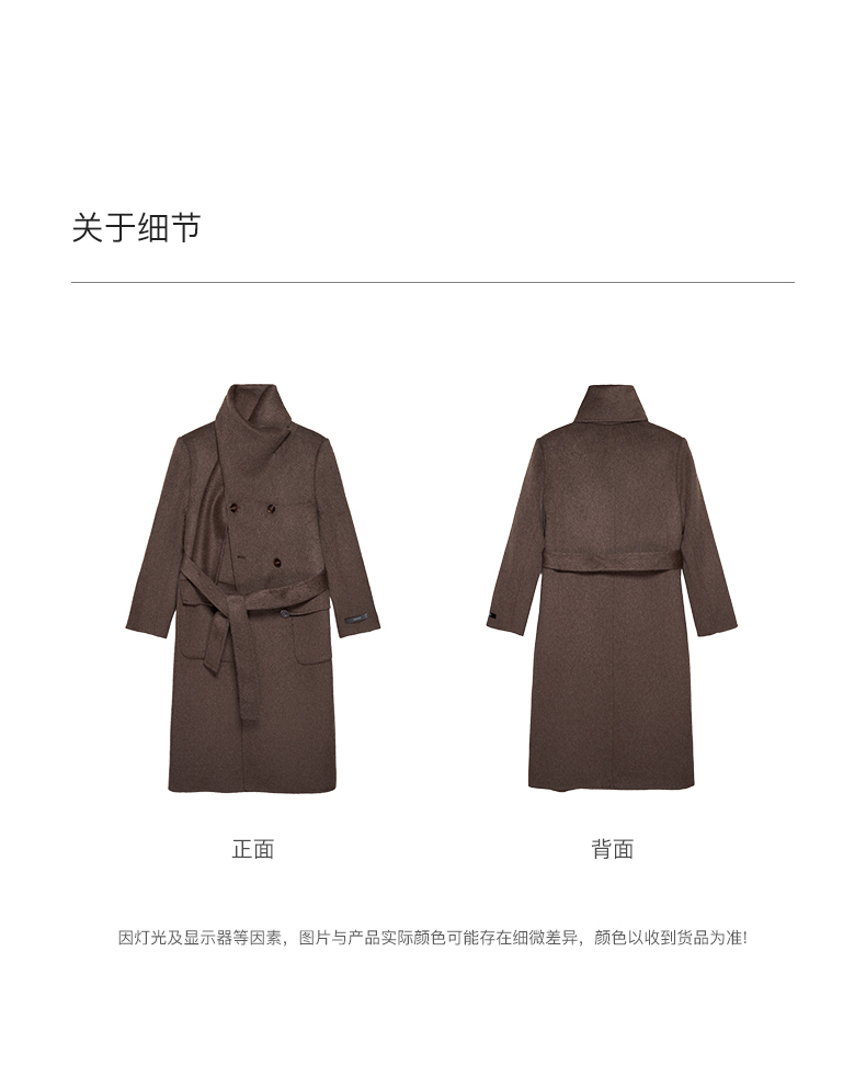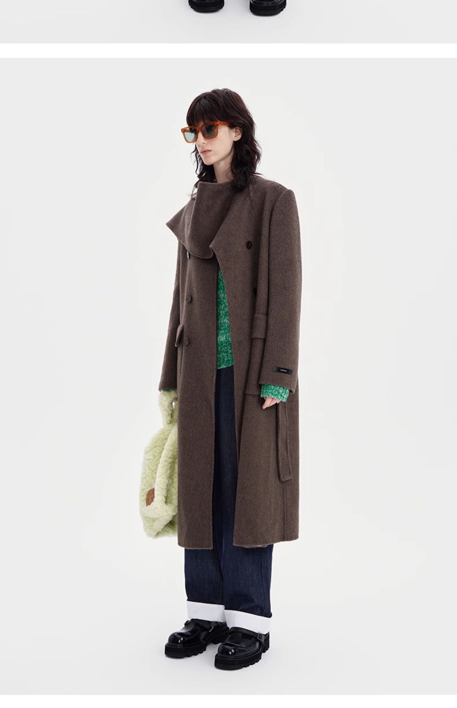 SELFWHO咖色澳洲进口绵羊毛苏力羊驼毛围巾领双面呢大衣女冬外套