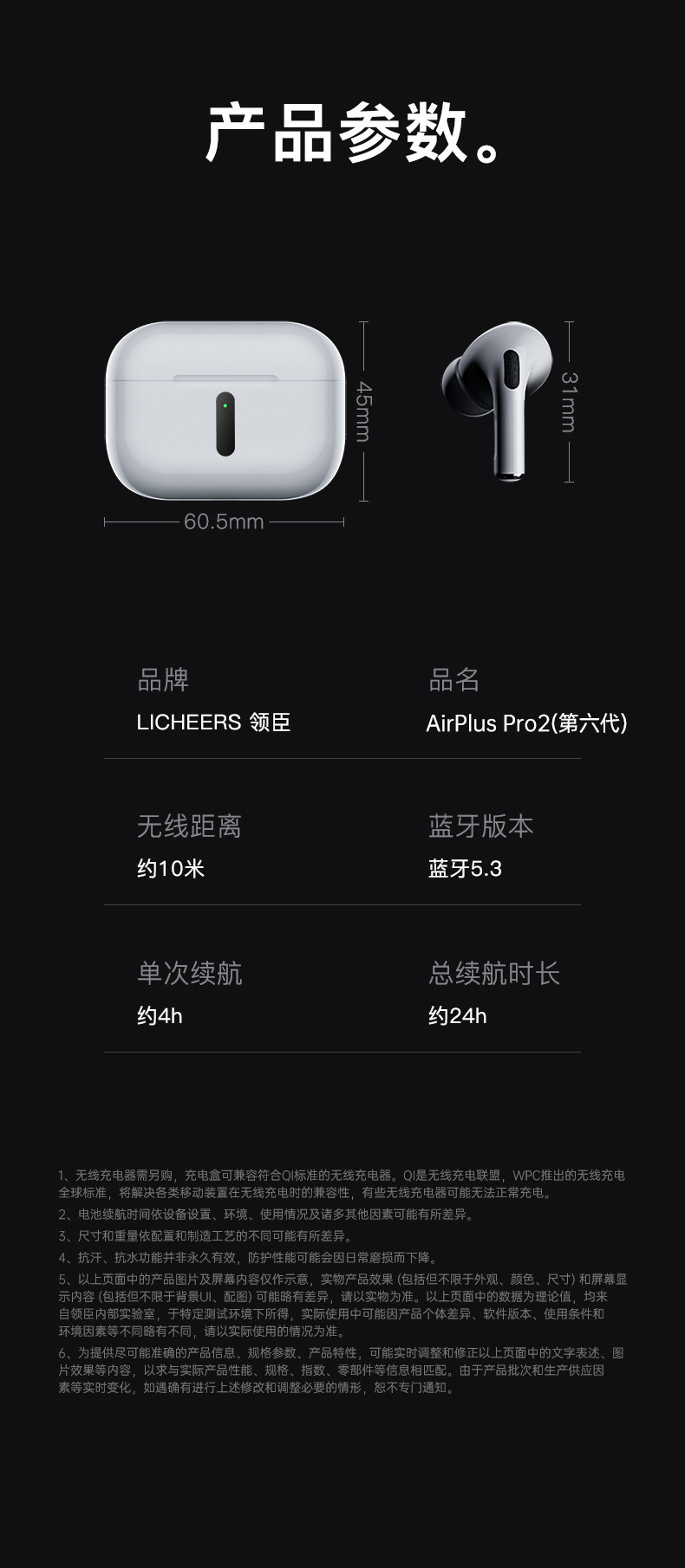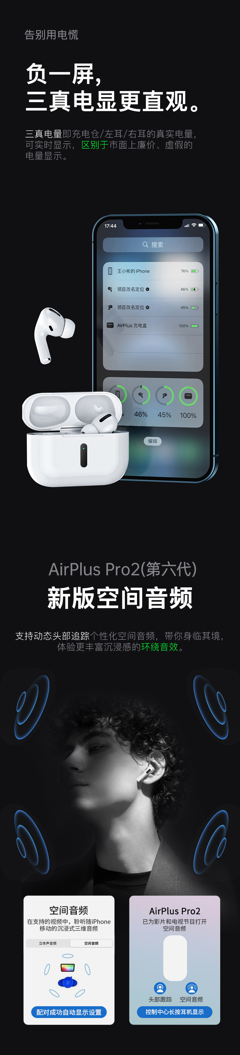 领臣 六代主动降噪蓝牙耳机 AirPlus2