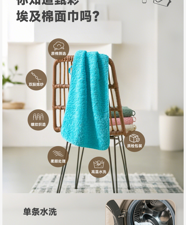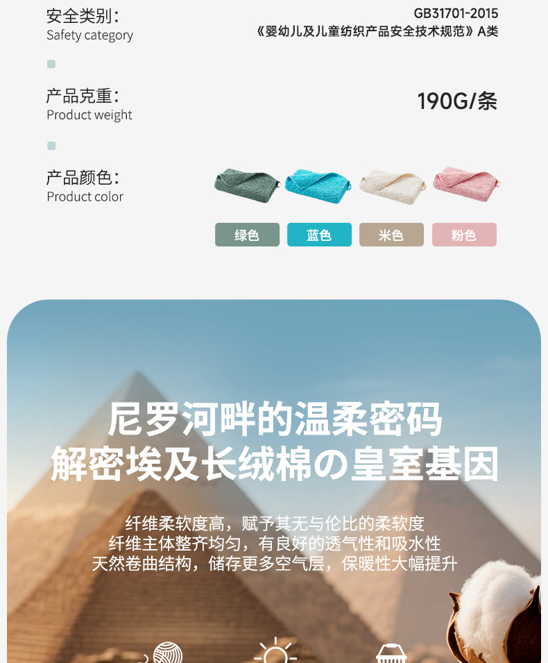 内野J-甄彩埃及长绒棉面巾 34*76cm