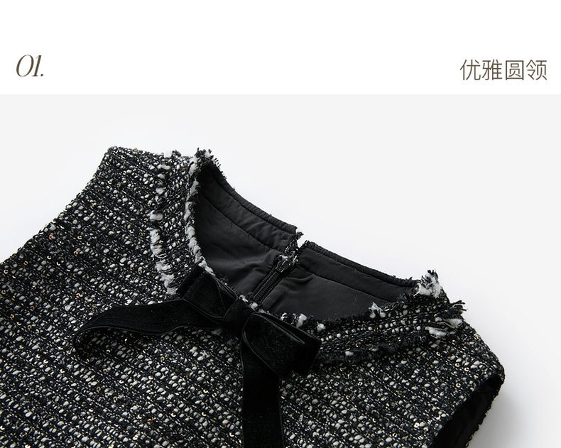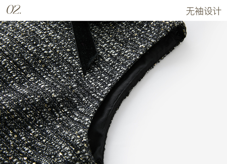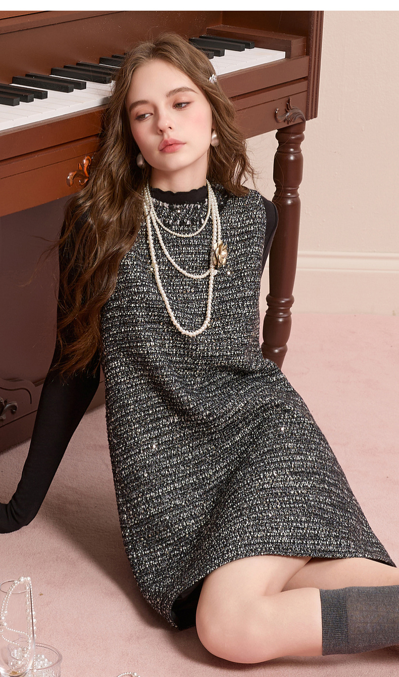 三彩2025冬季新款香风背心裙圆领无袖连衣裙叠穿短裙M