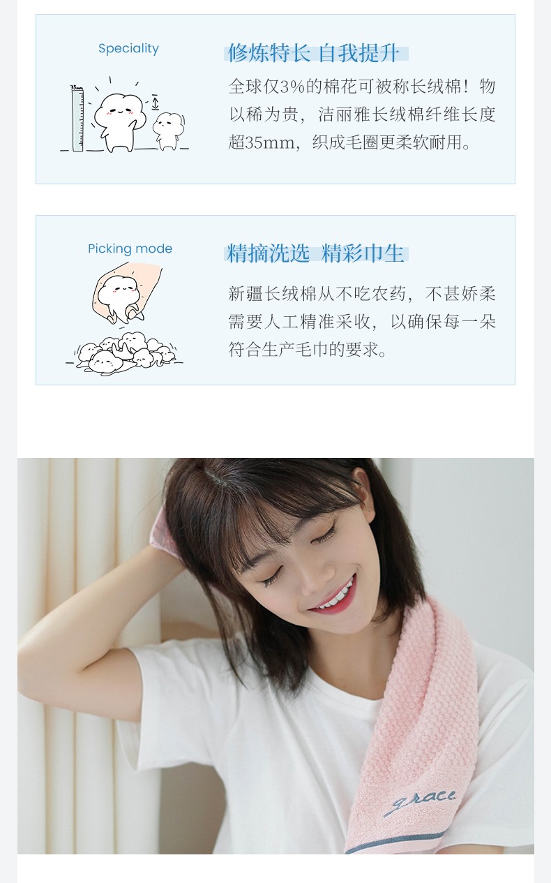 洁丽雅(Grace)长绒棉毛巾2条 7253颜色随机