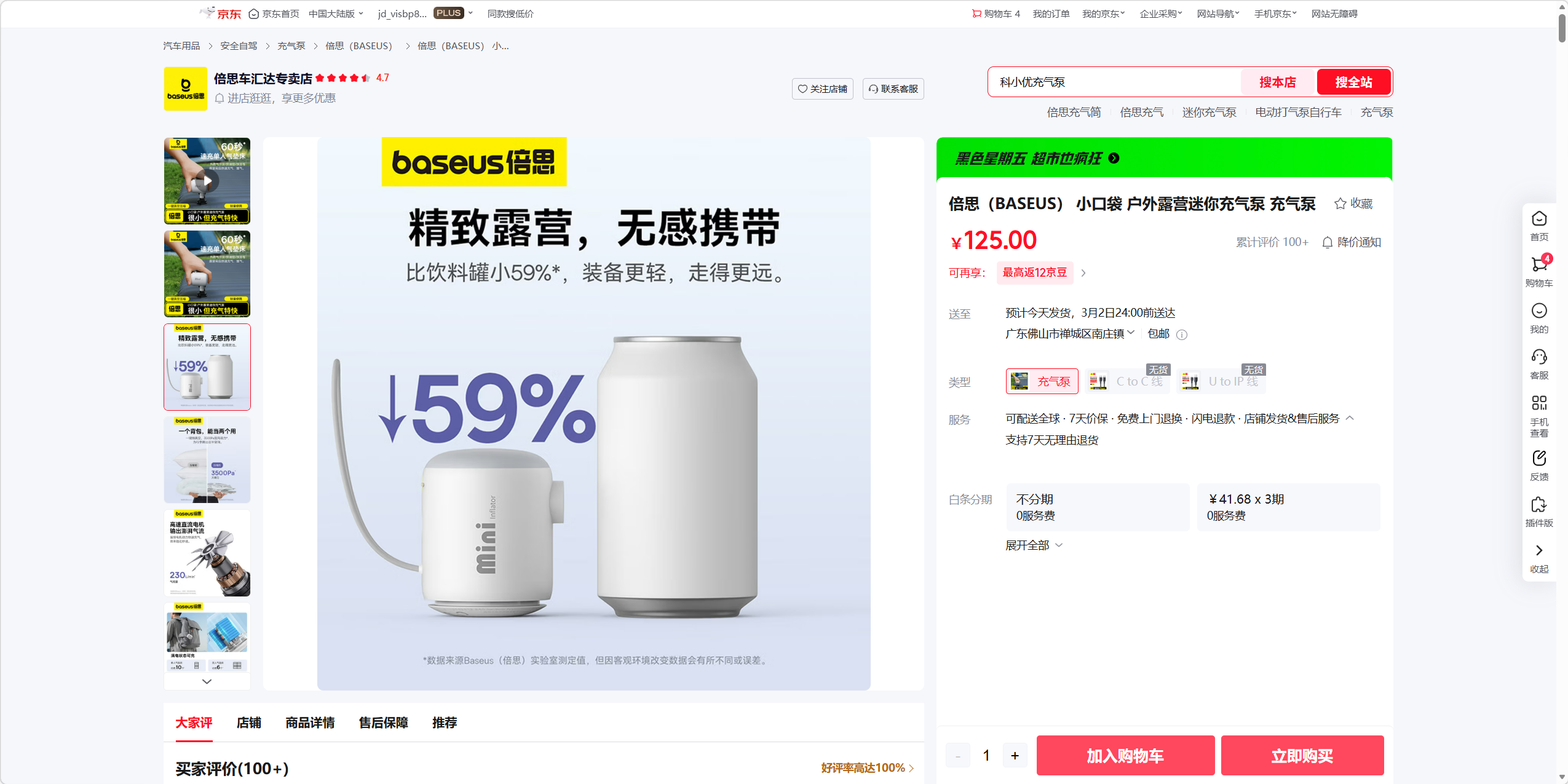 倍思(BASEUS) 小口袋 户外露营迷你充气泵 BS-CG017 轻量便携