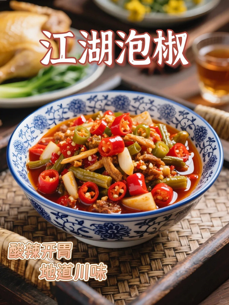今天必须给咱们唠唠这味古蜀江湖泡椒酱, 直接让做饭开挂,一酱就能把菜炒得超香,厨房小白秒变大厨,妥妥的干饭神器!🍚 无论家宴或家常小炒👍一勺唤醒味蕾的江湖豪情 在中国饮食文化中,川菜以其百菜百味、麻辣鲜香独树一帜, 而其中最具市井气息与江湖豪情的,莫过于四川江湖菜 江湖菜最大的特点便是酣畅淋漓,充满生活热情🔥🔥 将这豪迈的江湖气息、复杂的味觉层次,浓缩于一袋100g的江湖泡椒酱中🌶🌶🌶 😍一料成菜,地道川菜轻松搞定❗❗