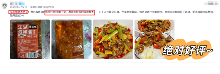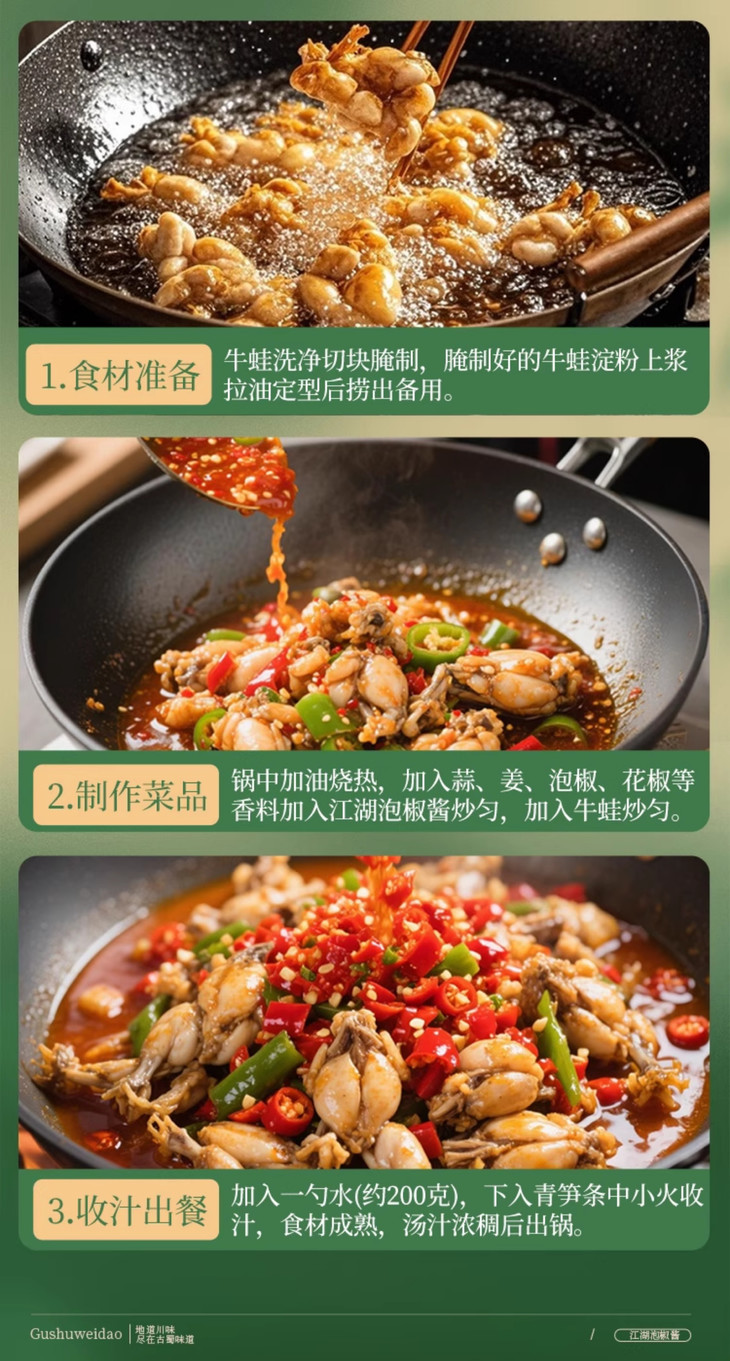 ✅江湖菜宗师: 泡椒牛蛙: 取一袋酱料与牛蛙一同爆炒,酱中泡椒、泡姜的酸辣味完美祛除腥气,鸡油猪油包裹住嫩滑的蛙肉,瞬间复刻招牌菜 泡椒鸡杂: 鸡杂脆爽,最需浓味压阵。此酱的酸辣咸香正好化解内脏的微腥,榨菜、萝卜的脆感更添层次。 泡椒鱿鱼/黄喉: 海鲜与下水,皆是其绝配。浓郁的酱汁能迅速渗透食材,赋予其奔放热烈的川味灵魂。 ✅ 家常小炒神器: 泡椒土豆丝: 普通土豆丝,加一小勺此酱同炒,立马变身饭店水准,酸辣开胃,脆爽下饭。 泡椒肉丝: 肉丝滑炒后,加入酱料,简单翻炒即成。酱中的油脂和风味足以让肉丝变得异常美味。 泡椒炒饭: 隔夜米饭的救星。用此酱代替酱油和盐,与鸡蛋、米饭同炒,颗粒分明,酸香可口