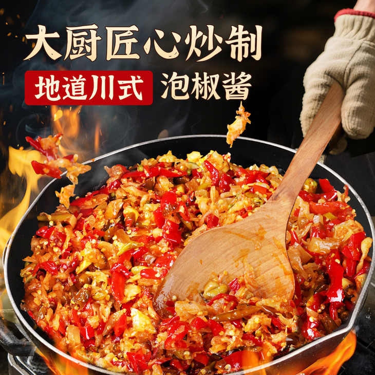 ✅ 凉拌蘸水精华: 凉拌菜: 拌黄瓜、拌木耳、拌腐竹,用此酱加少许醋和糖,即成一道极品凉拌汁。 火锅蘸料: 在香油蒜泥碟中加入一勺此酱,瞬间提升蘸料的层次,解腻增香。 面条伴侣: 煮好面条,舀上一勺酱拌匀,就是一碗诚意满满的泡椒拌面,无需任何其他调料。 ✅ 蒸煮焖炖利器: 蒸鱼头: 将酱料均匀抹在鱼头上,上锅清蒸,酸辣味渗入鱼肉,去腥提鲜,风味绝佳。 烧豆腐/烧脑花: 作为烧菜的底料,能赋予菜肴浓郁汤汁和复杂口感