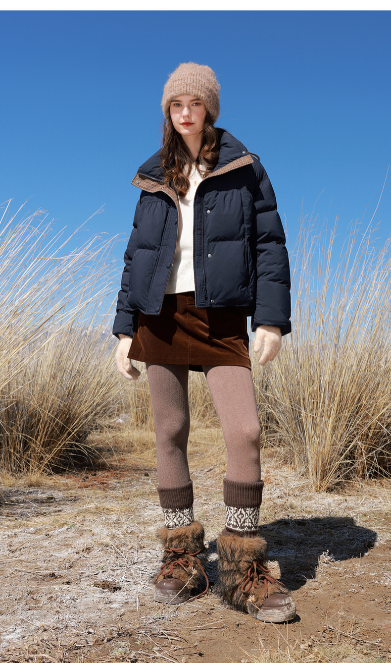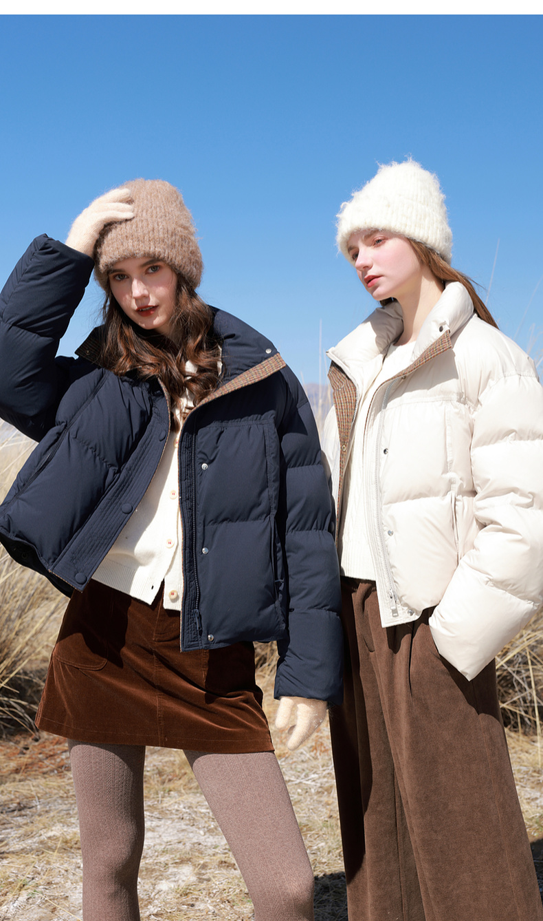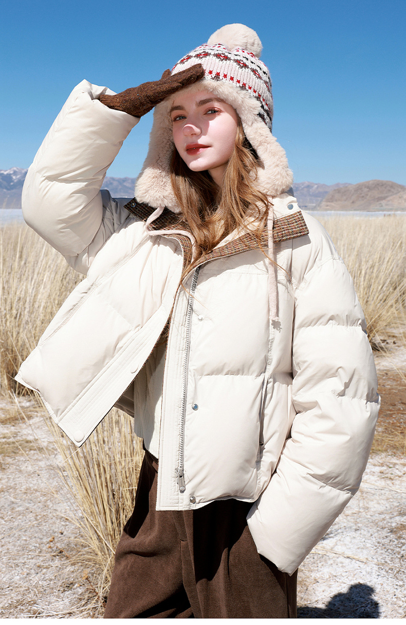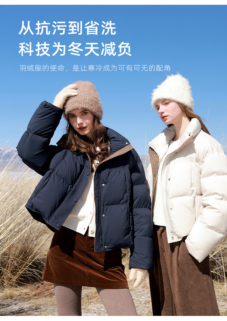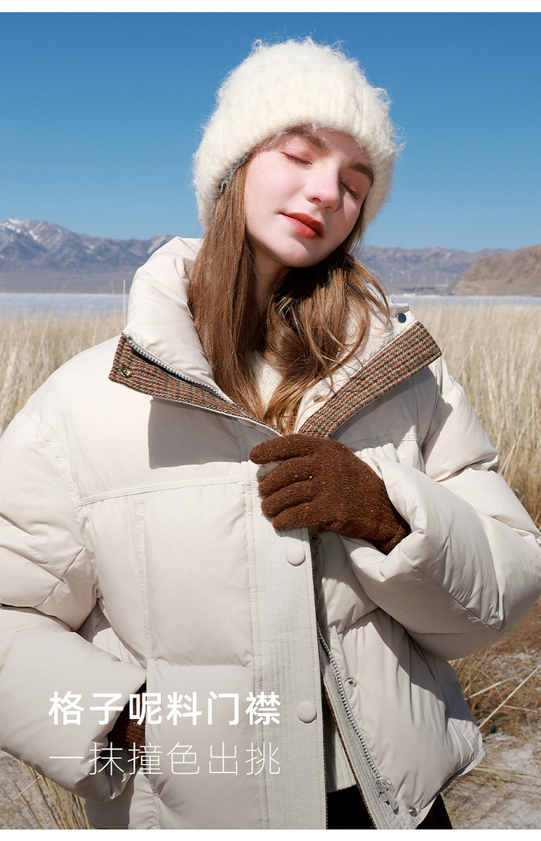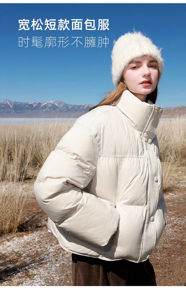 【易打理】三彩2025冬季新款90白鸭绒羽绒服面包服宽松短款M