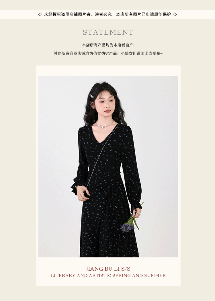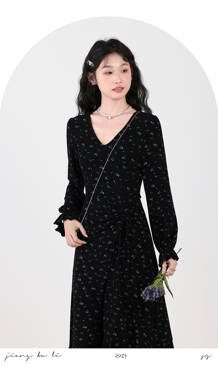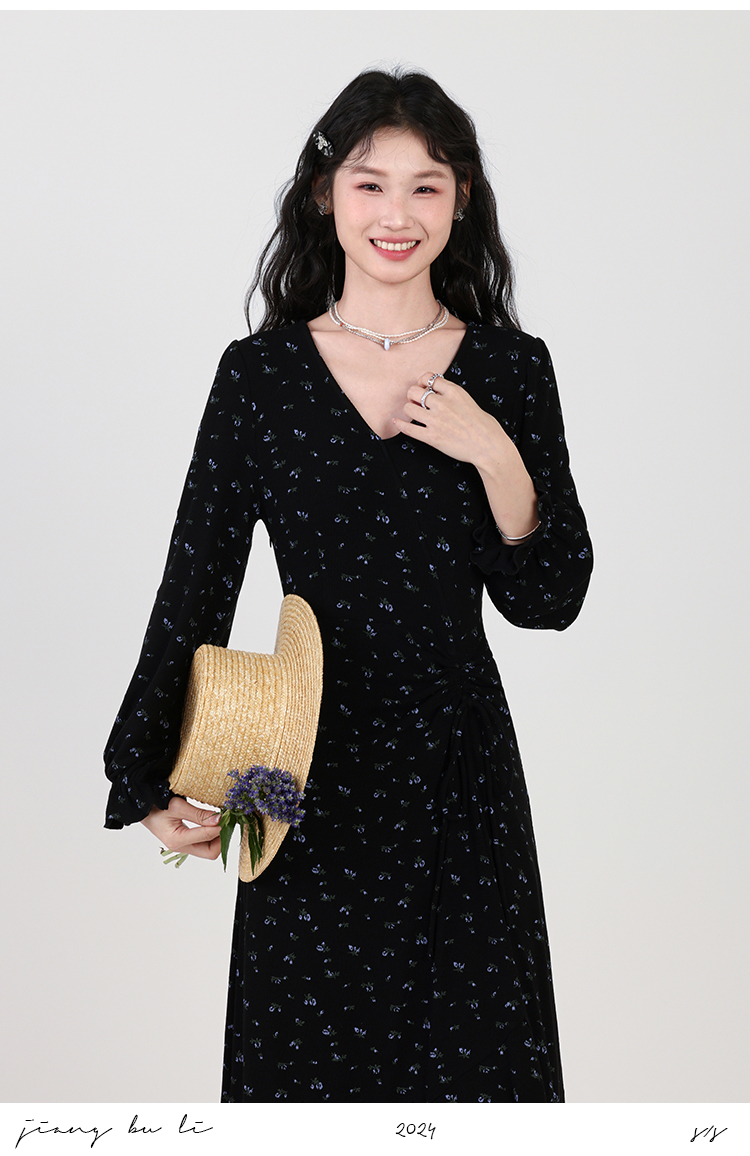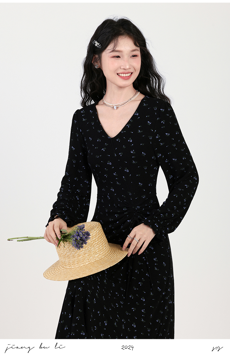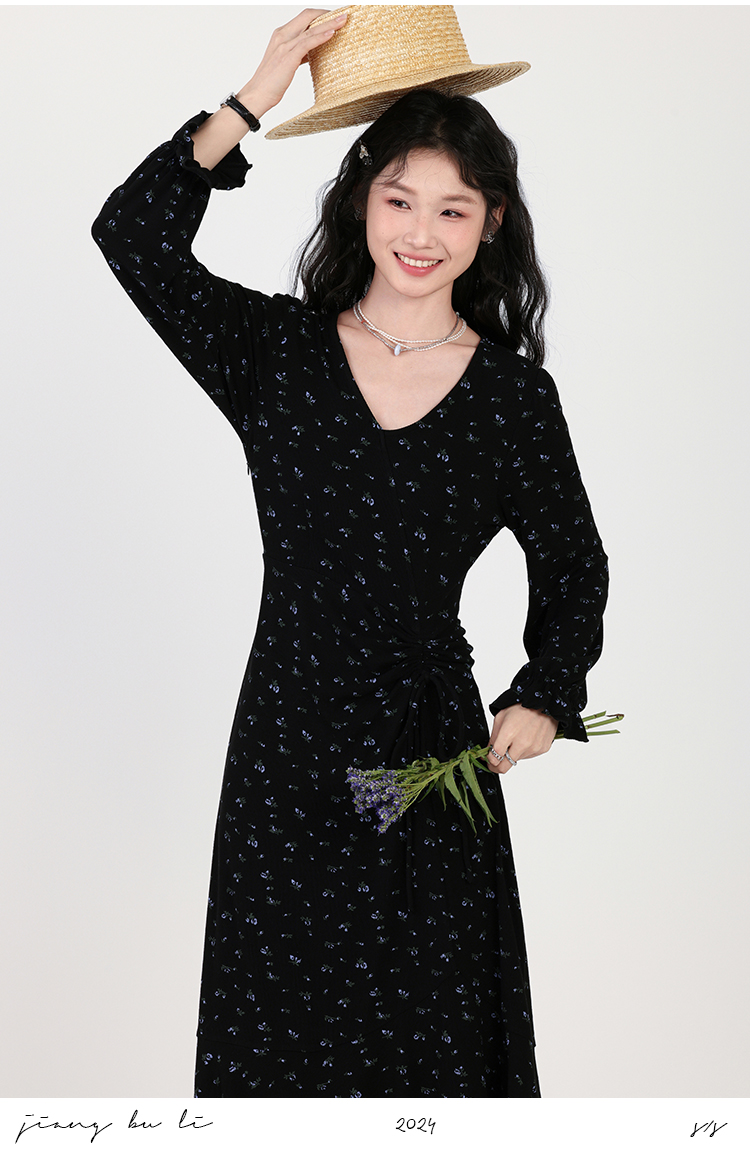 鹿向南【蔷薇少女】气质法式连衣裙春夏长款好看碎花连衣裙DYL661155