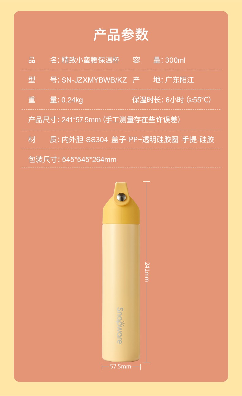 康宁精致小蛮腰保温杯带提手便携外带保温杯 Snapware精致小蛮腰保温杯