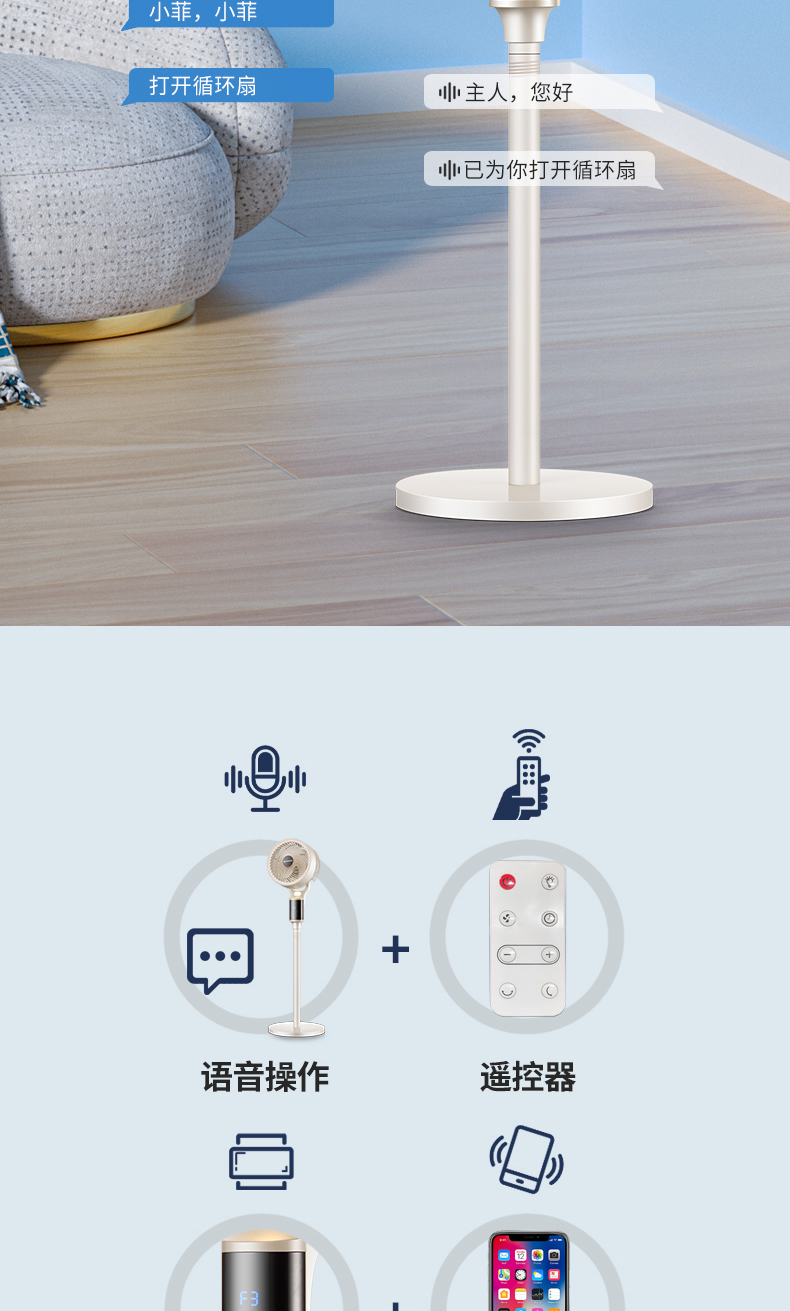 志高空气循环扇家用卧室客厅办公语音摇头落地扇HL241R 商品图4
