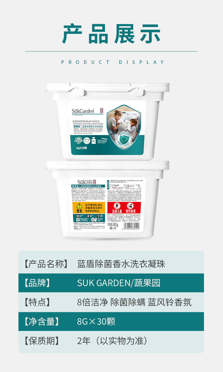 SukGarden蔬果园蓝盾除菌香水洗衣凝珠8g*30颗