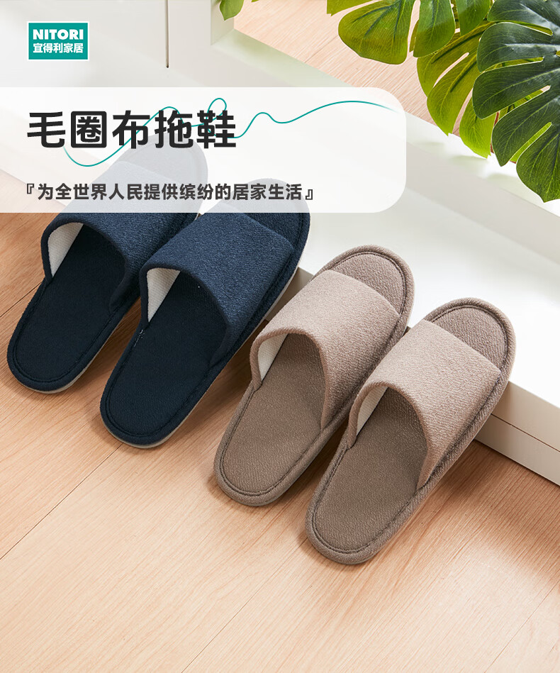 毛圈布拖鞋 淡摩卡/深蓝 M/L
