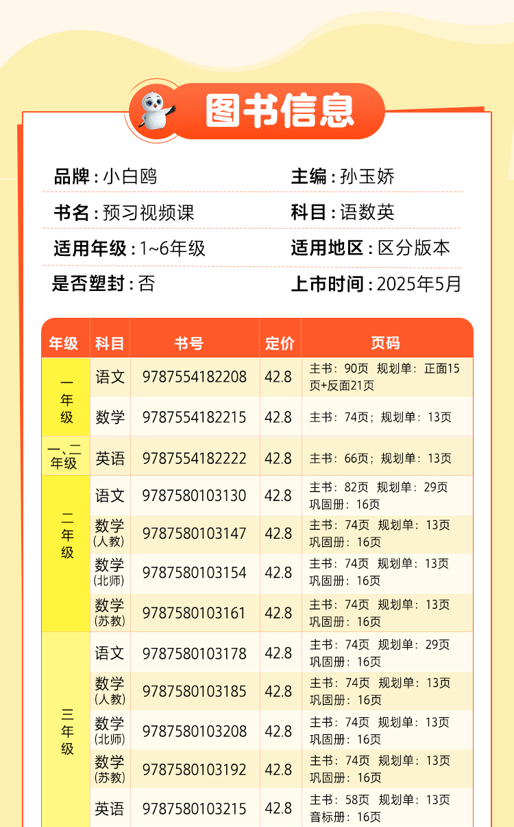 2026新版万唯小白鸥小学预习视频课一二三四五六年级上册语数英人教版课本基础知识盘点小学生暑假作业练习册升学衔接教材全套