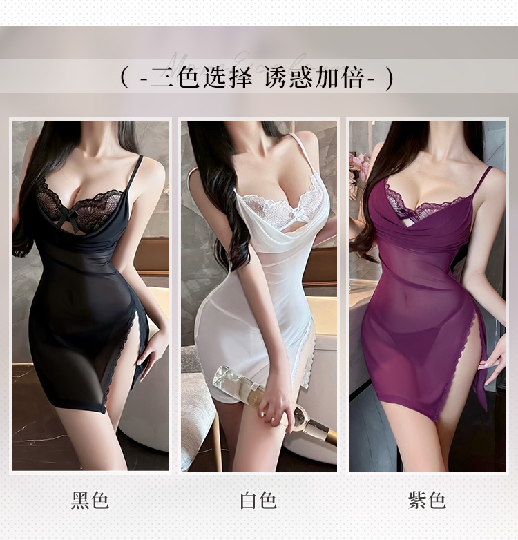 【情趣内衣】谜姬×霏慕 私房诱惑双层开视吊带裙7803