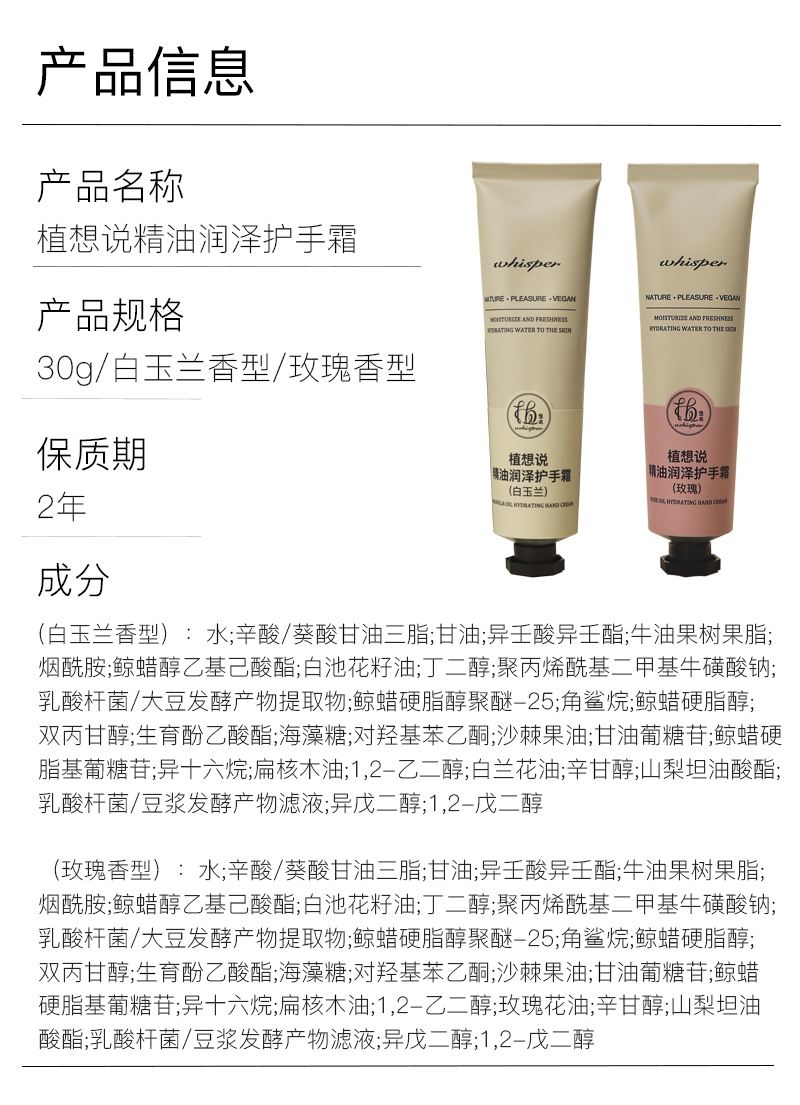 植想说精油纯素护肤保湿不油腻滋润柔嫩细滑防干裂天然植物护手霜