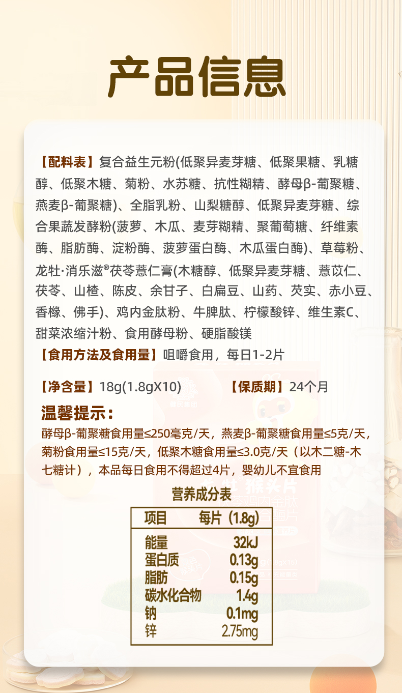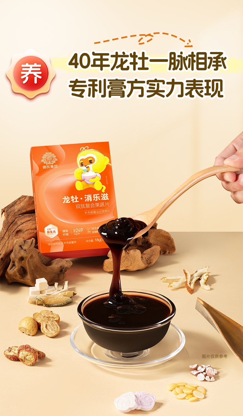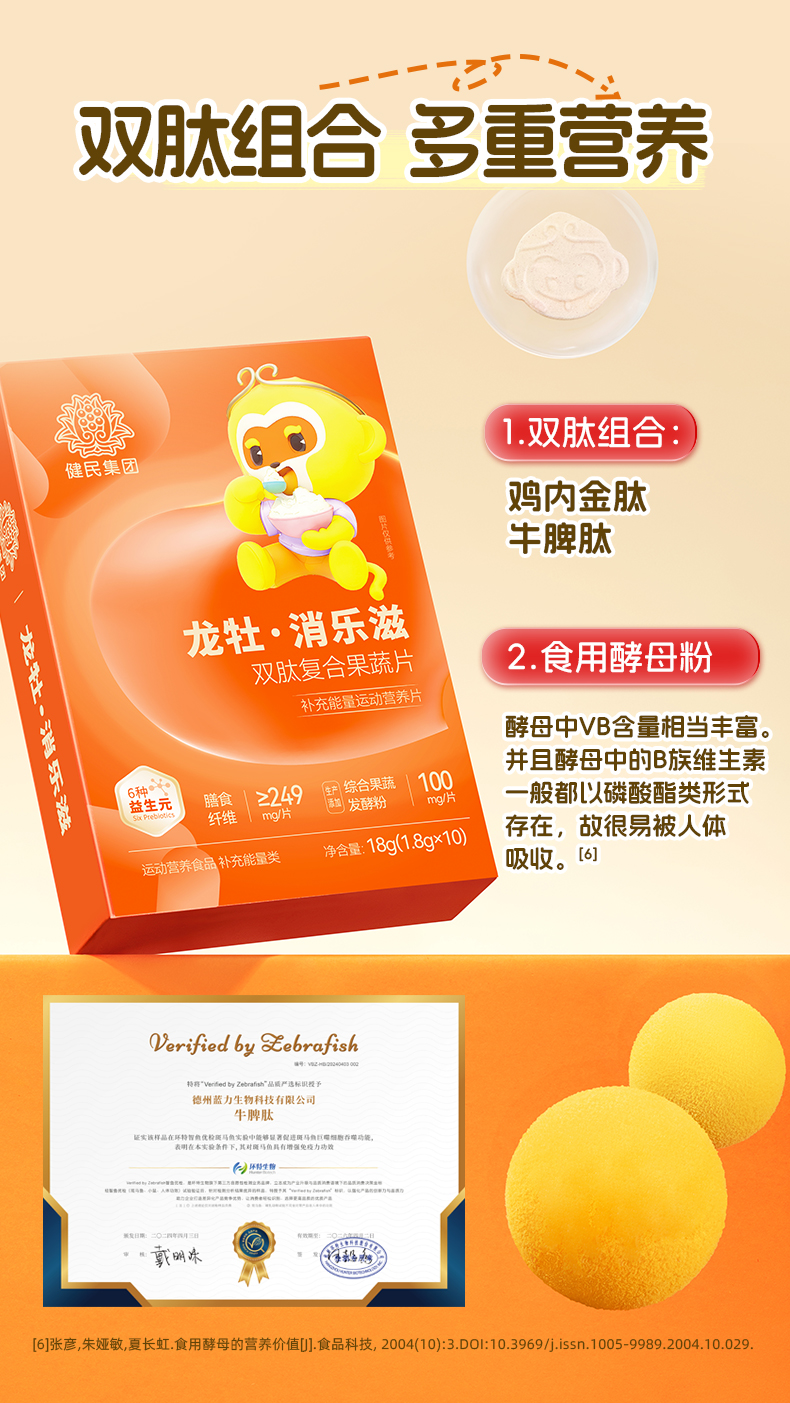 新升级【双肽好吸收】龙牡消乐滋双肽复合果蔬片(10粒*1.8g/盒),鸡内金肽牛脾肽加锌益生元