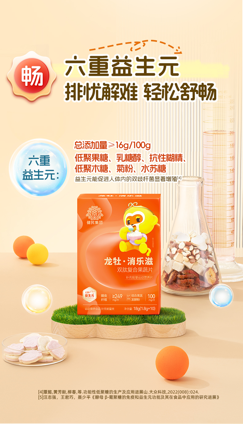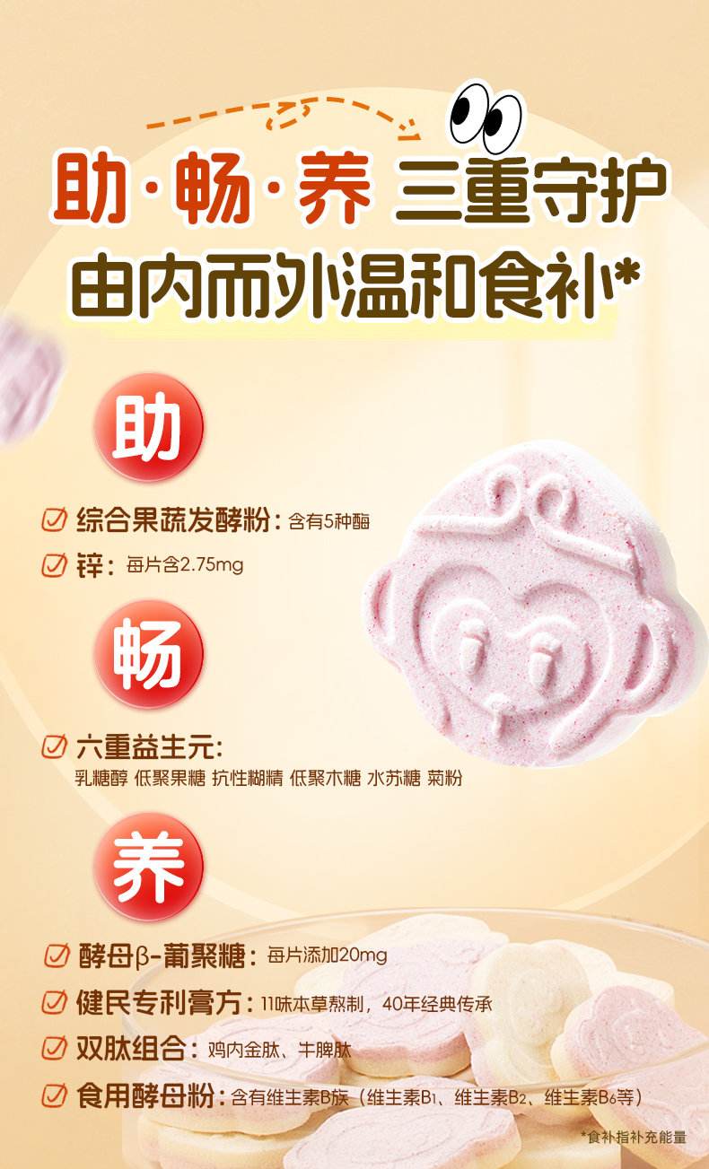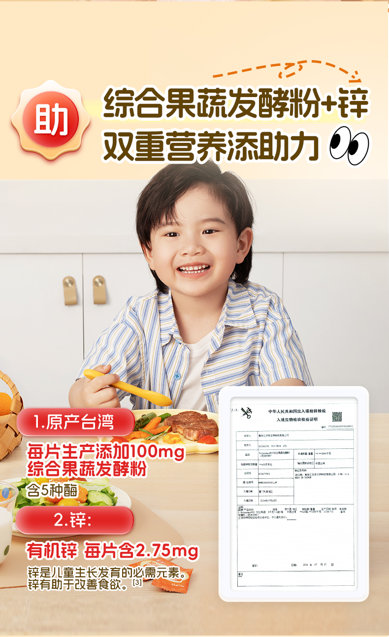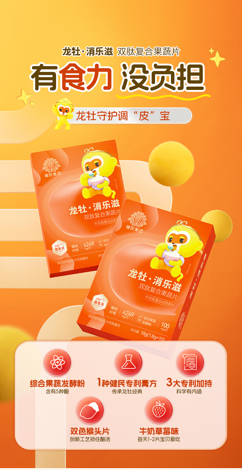 新升级【双肽好吸收】龙牡消乐滋双肽复合果蔬片(10粒*1.8g/盒),鸡内金肽牛脾肽加锌益生元