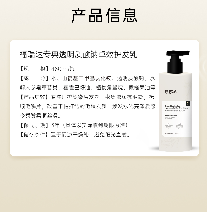 福瑞达|【专典透明质酸钠卓效护发乳】 云朵瓶 滋润抗毛躁 干枯烫染