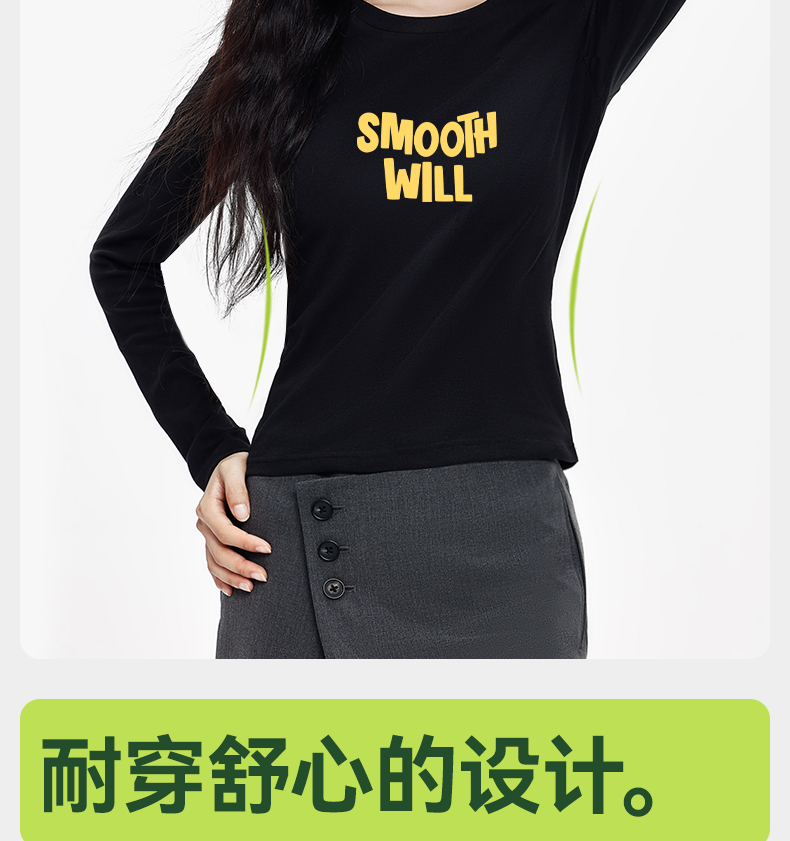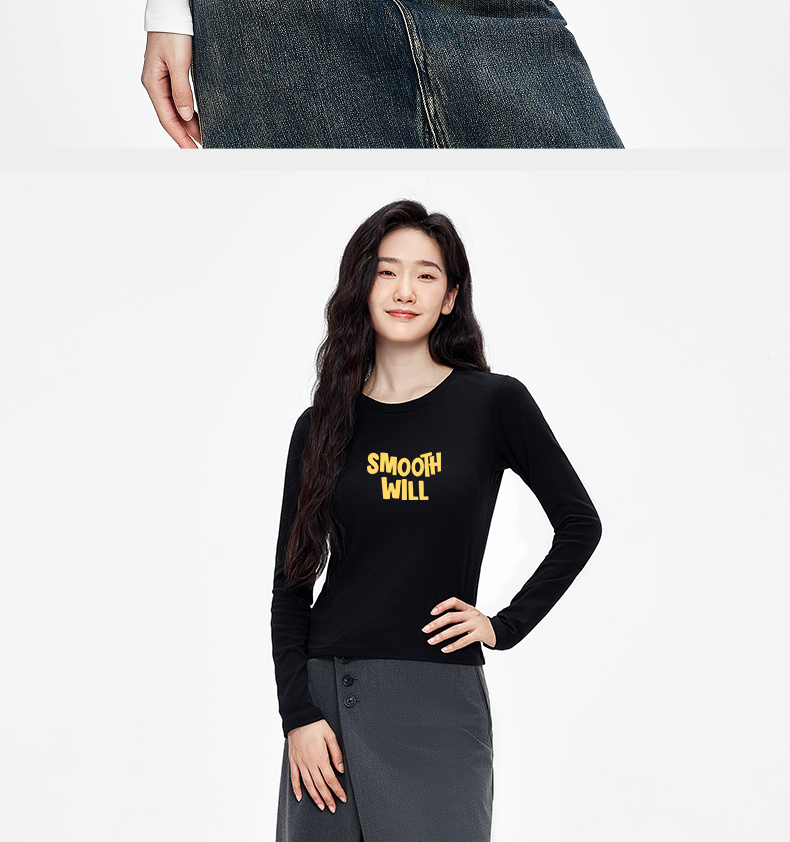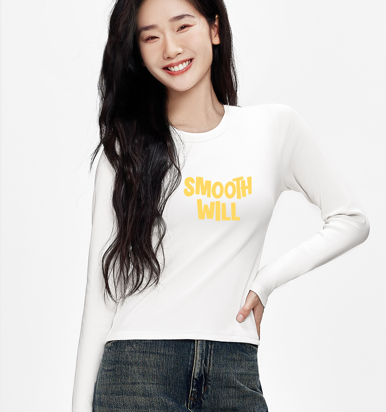 「棉的美学」辣妹正肩秋季长袖女圆领T恤字母印花软糯舒适打底衫