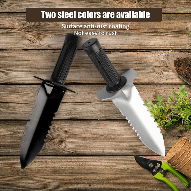 手柄和铲子的连接处加固了,更耐用,也不容易断裂。你可以放心,可以用它挖掘草根、松动土壤供植物生长、金属探测挖掘。