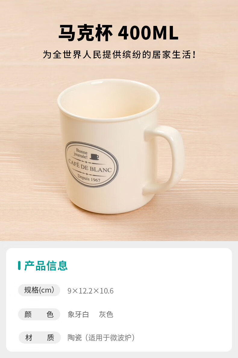 马克杯 400ML 象牙白/灰色 FRENCH CAFE