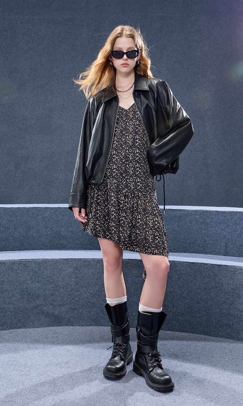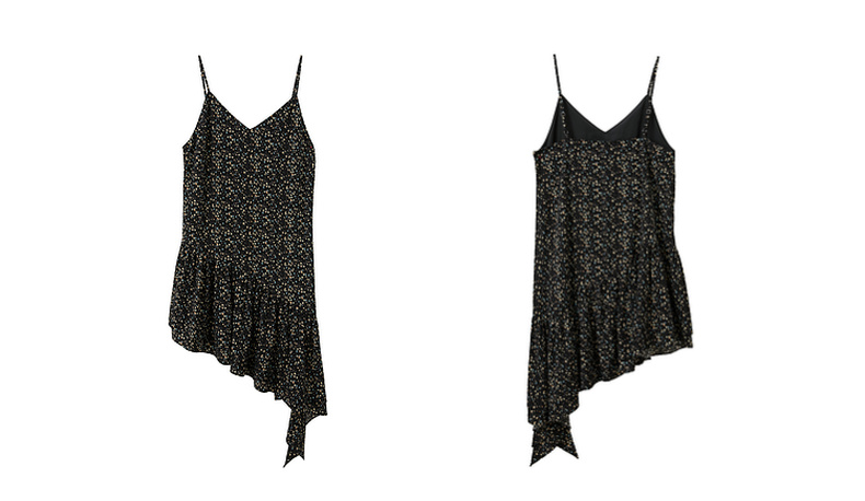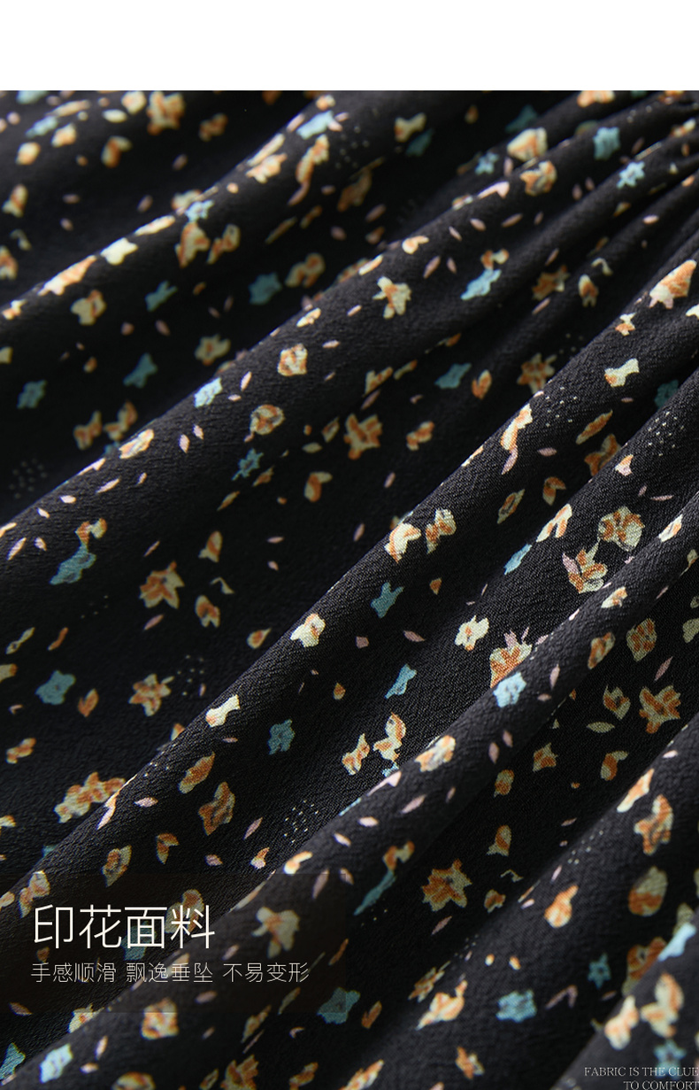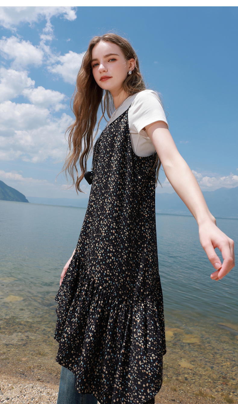 三彩2025秋季新款碎花吊带裙不对称连衣裙叠穿短裙M
