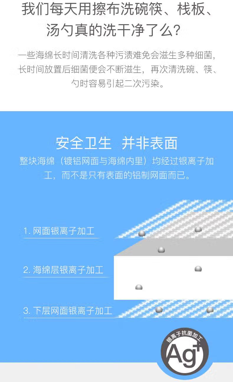 日本进口小久保工业所银离子抗菌铝网厨具清洁海绵3个装