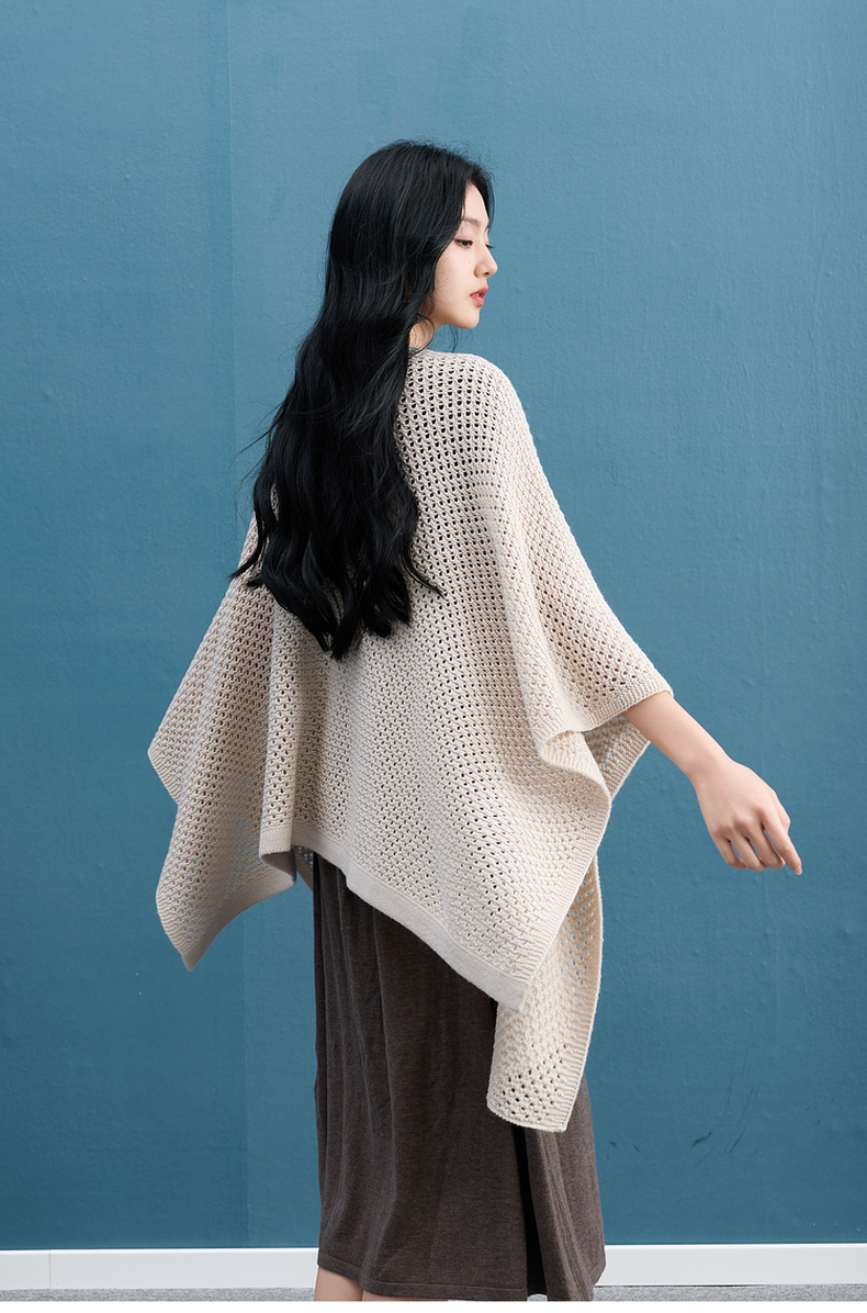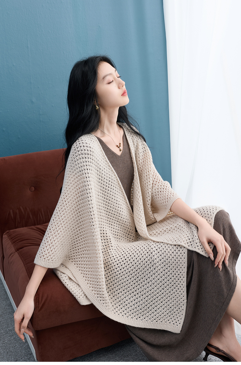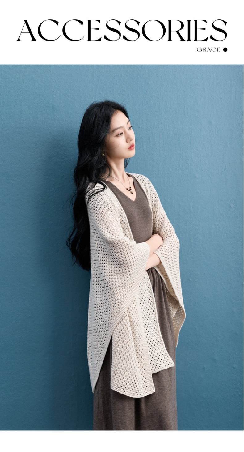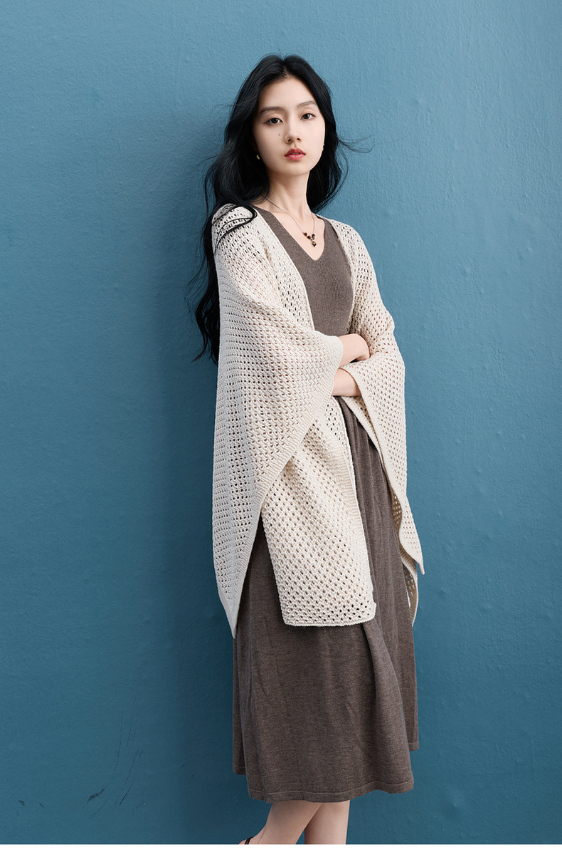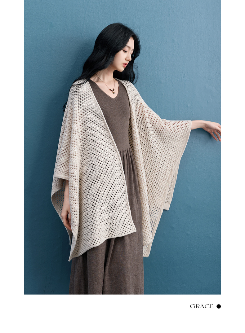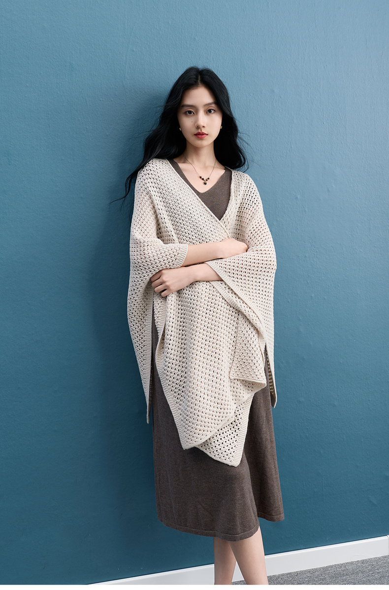 三彩2025新款知性通勤风针织披肩镂空约会简约慵懒氛围感时髦自在