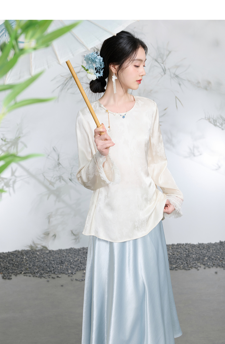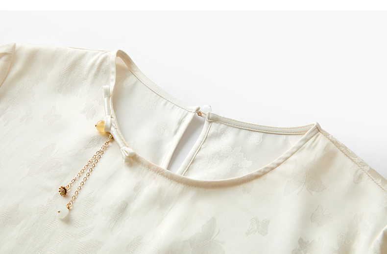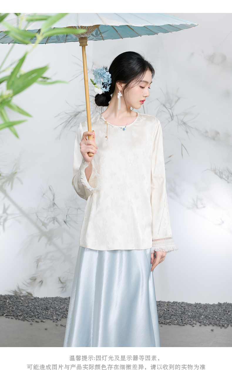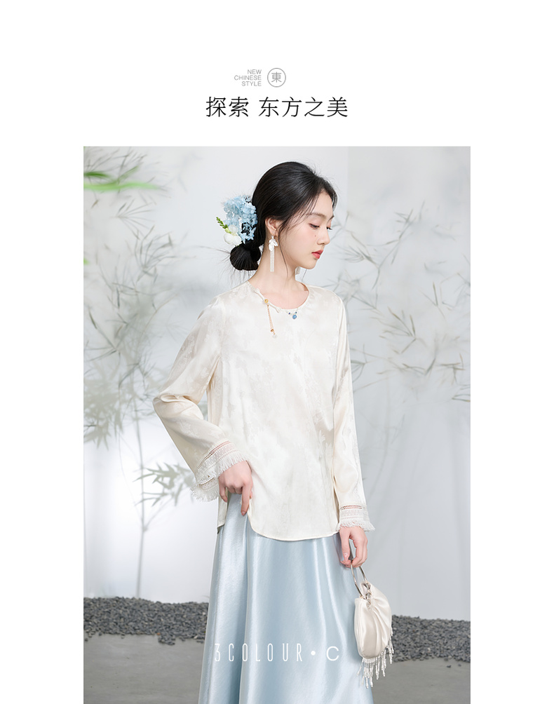 三彩【蝶影流光】2026春季新款新中式提花小衫流苏宽松盘扣C