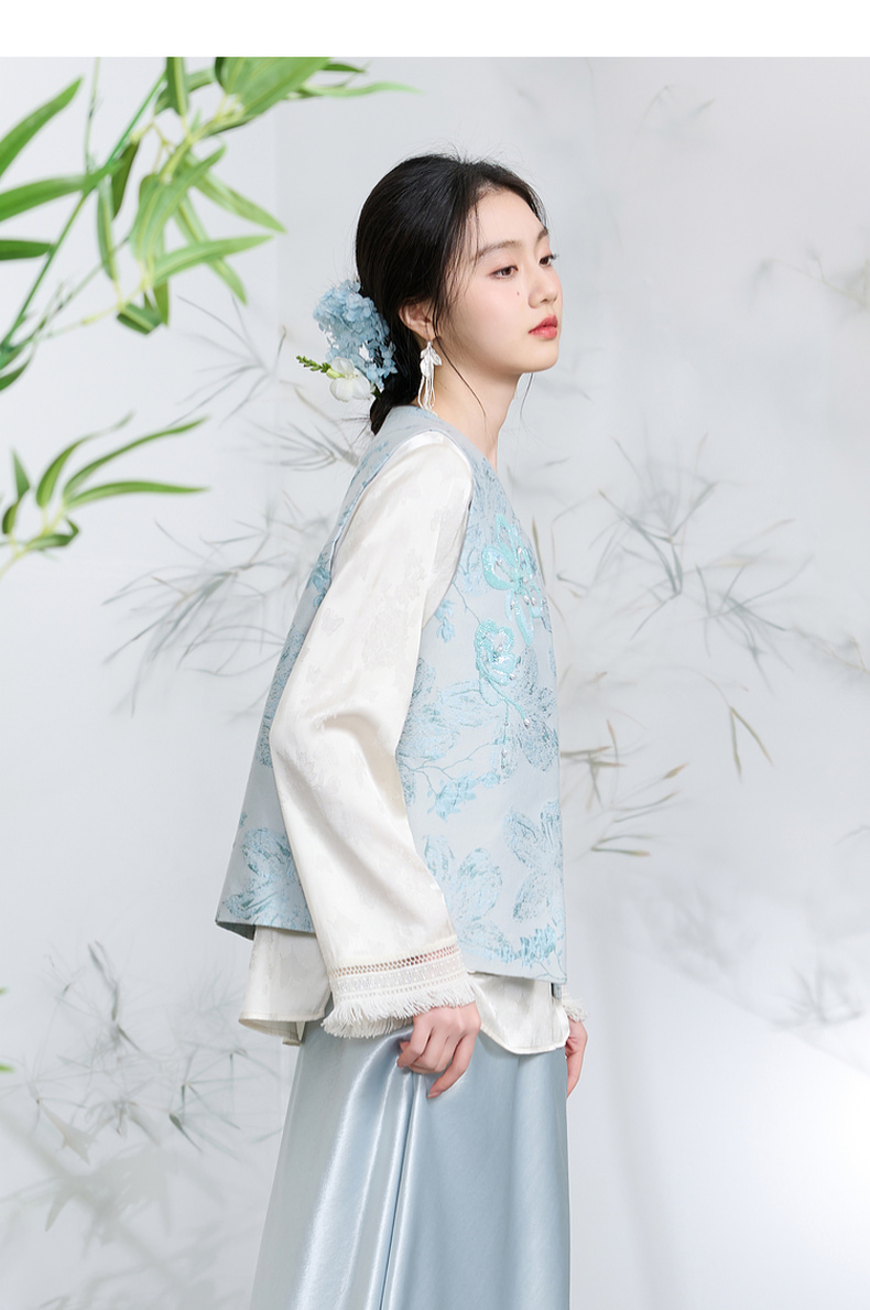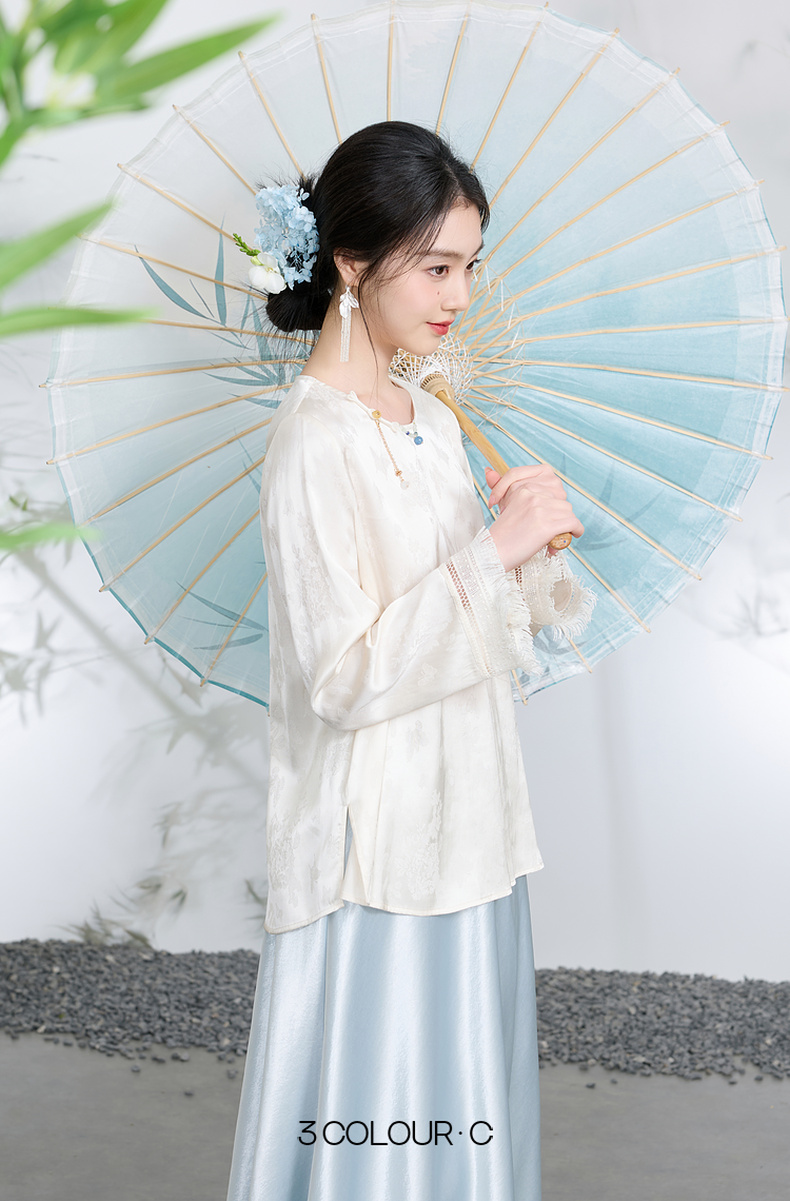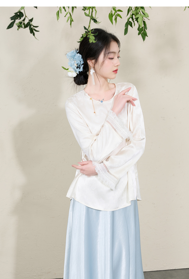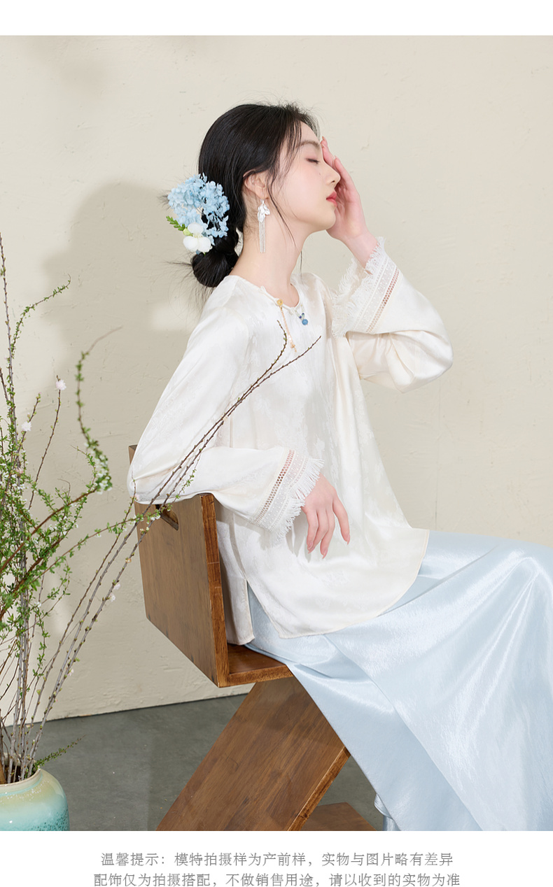 三彩【蝶影流光】2026春季新款新中式提花小衫流苏宽松盘扣C