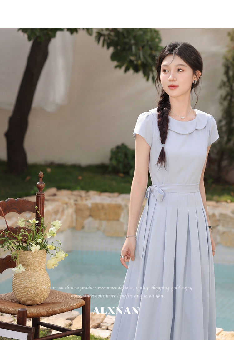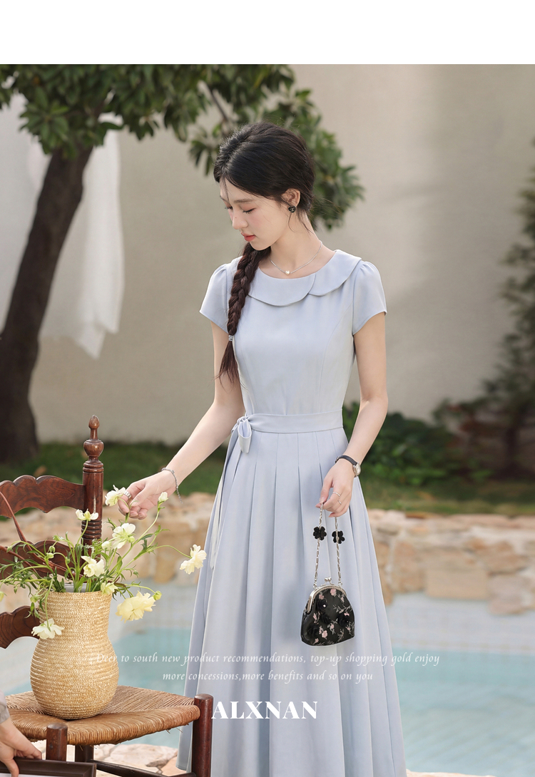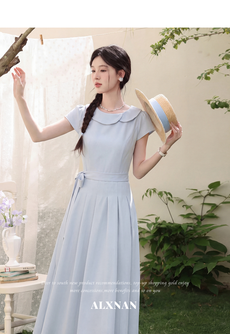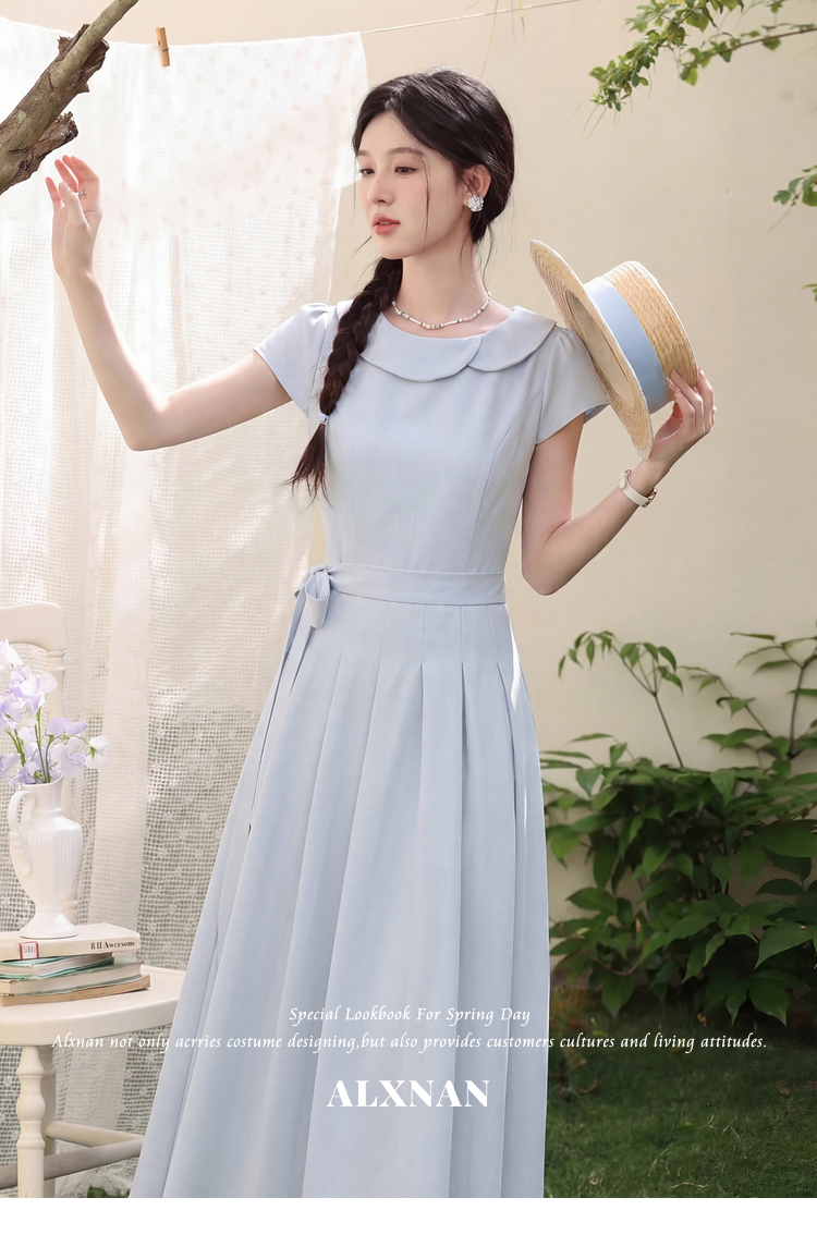 鹿向南【0410/20:00新品前1小时7折限量100件】法式蓝色连衣裙女