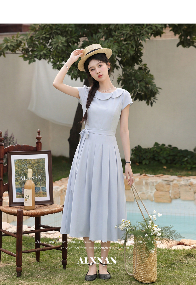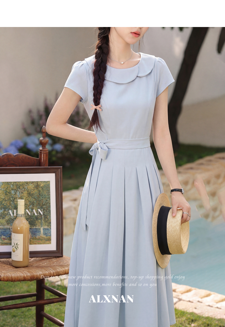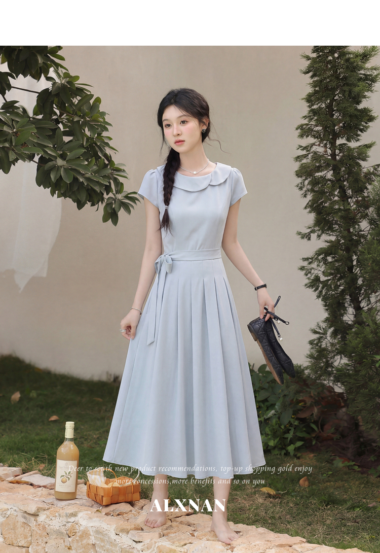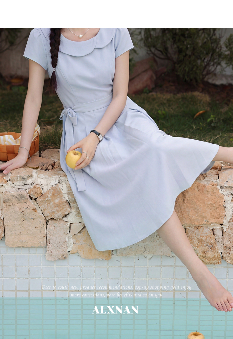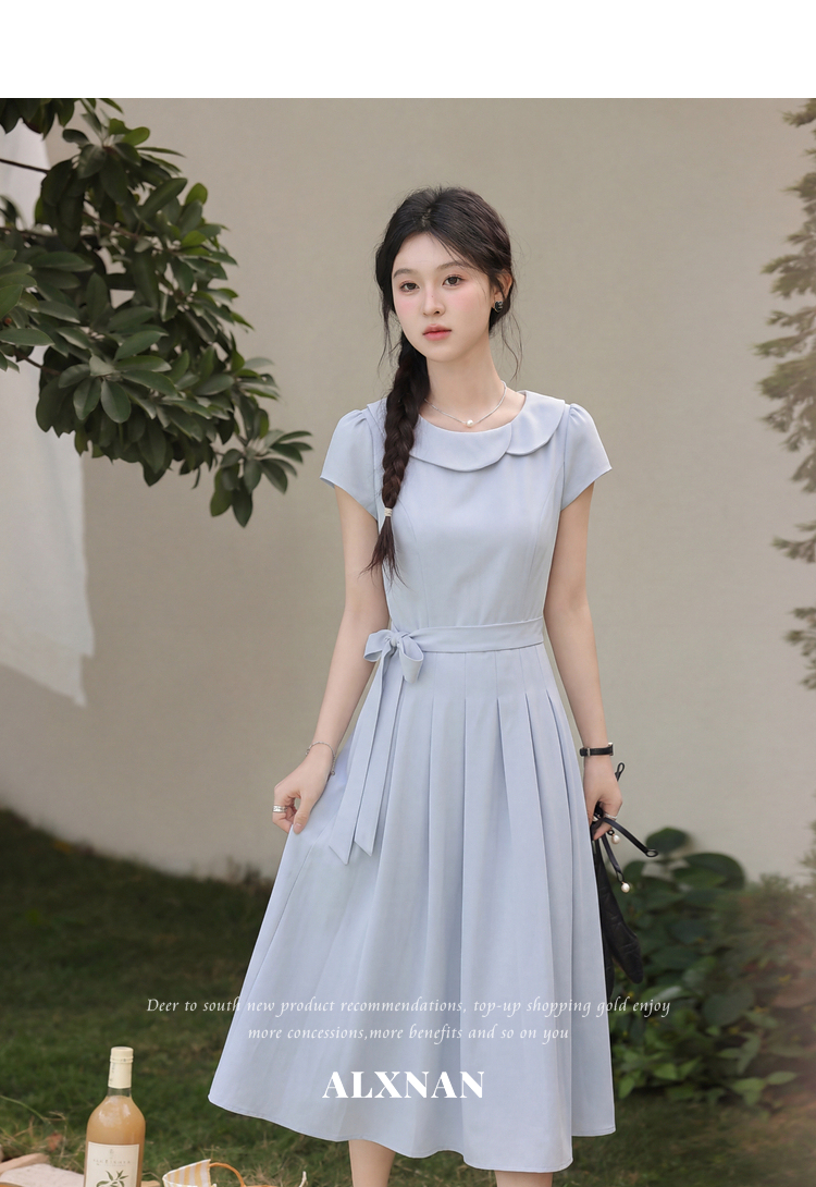 鹿向南【0410/20:00新品前1小时7折限量100件】法式蓝色连衣裙女