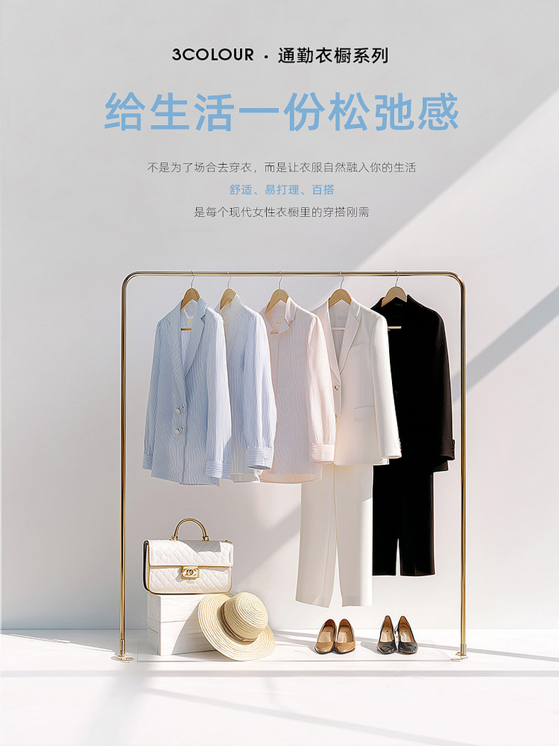 - 3COLOUR,一直致力于探索自我与时尚审美,用穿衣哲学折射生活主张,在流动中探寻恒久。