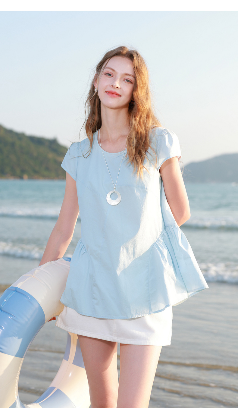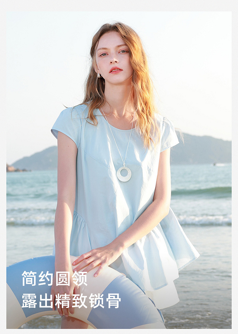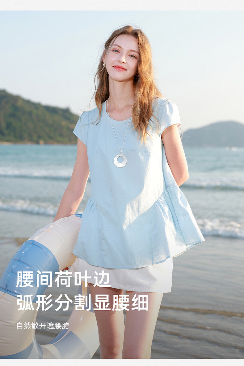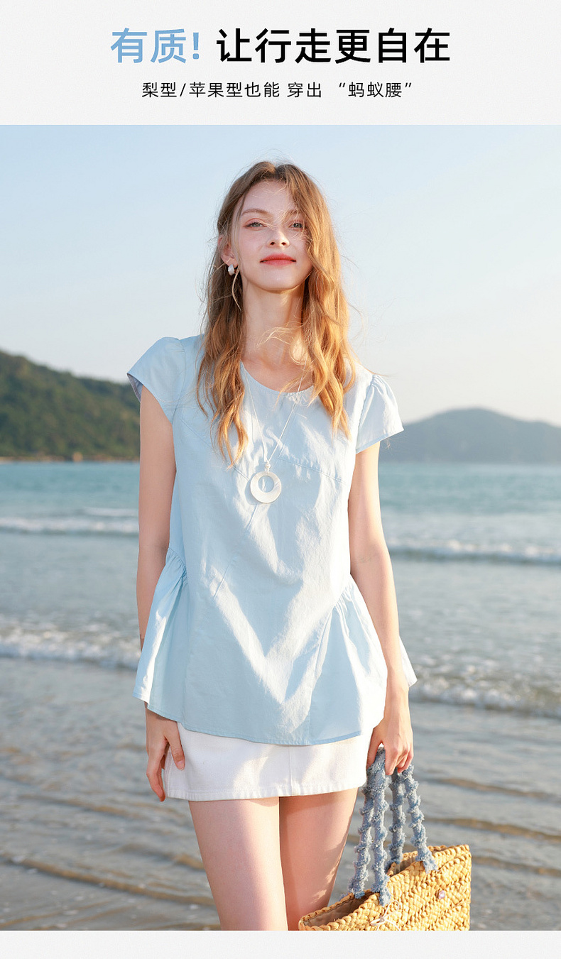 【100棉】三彩2026春季新款圆领短袖娃娃衫衬衣套头小衫宽松M