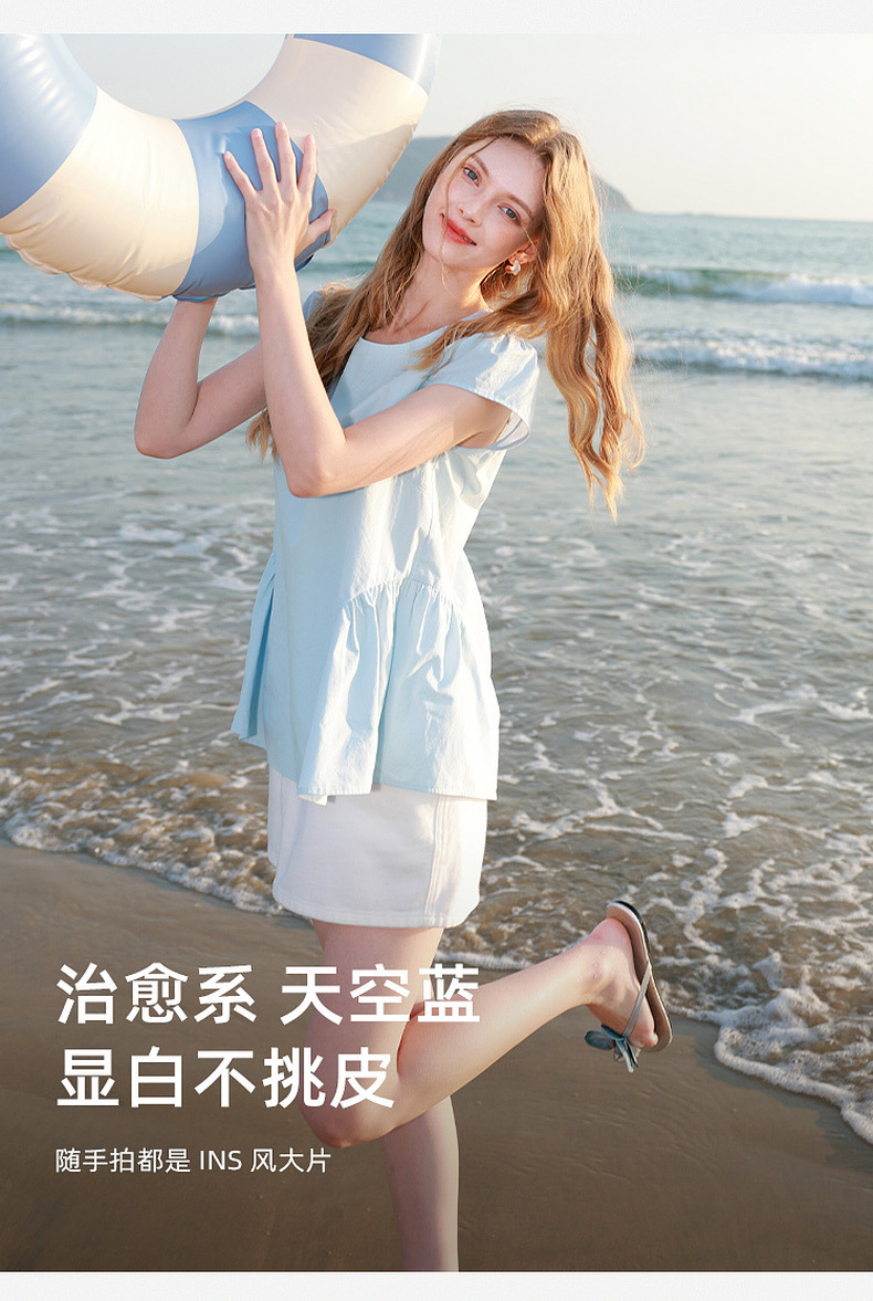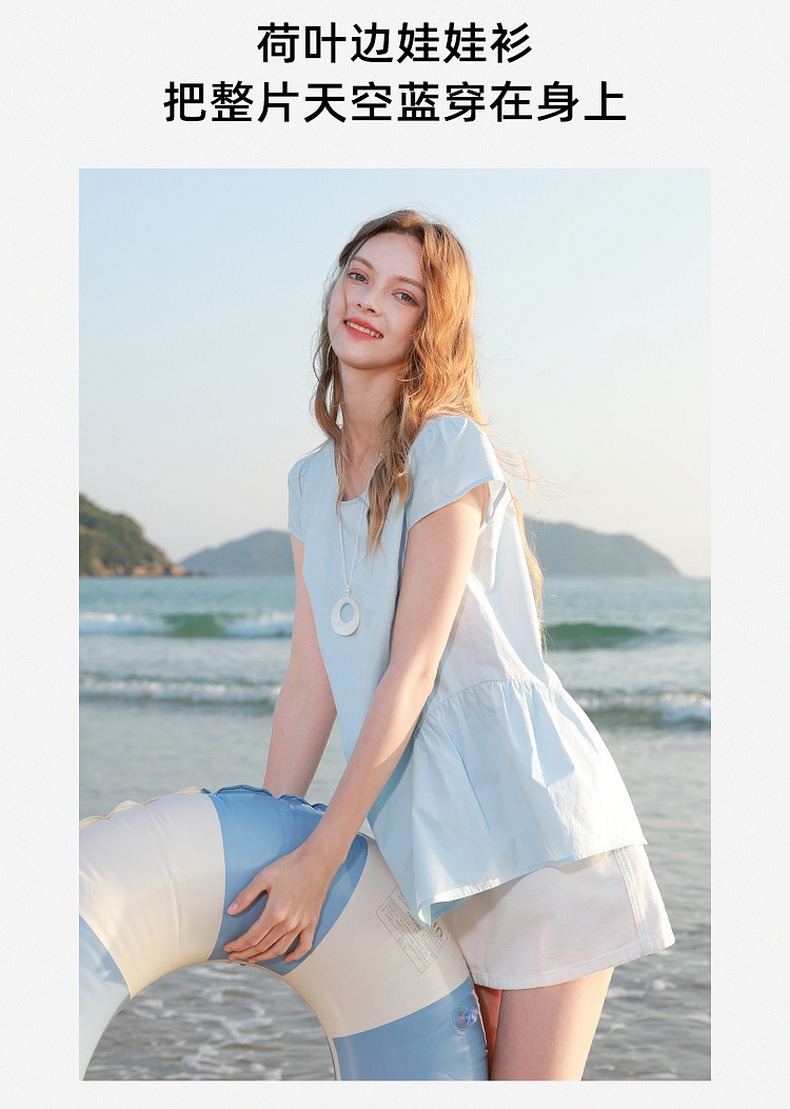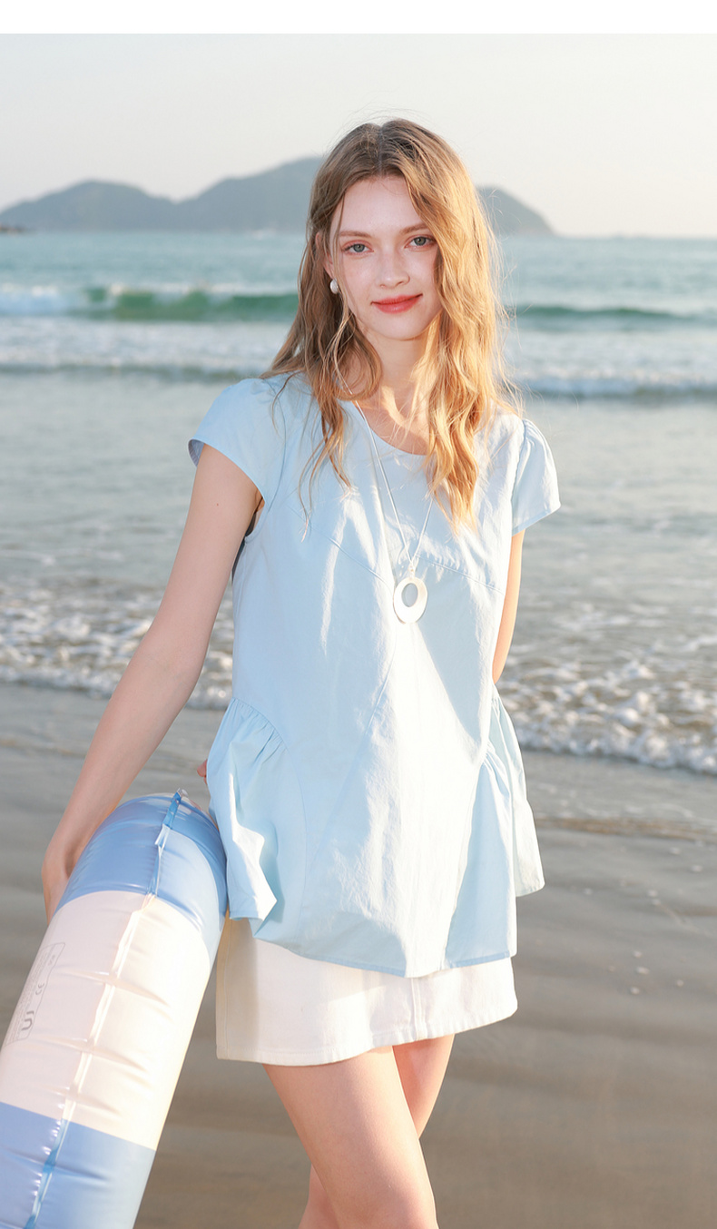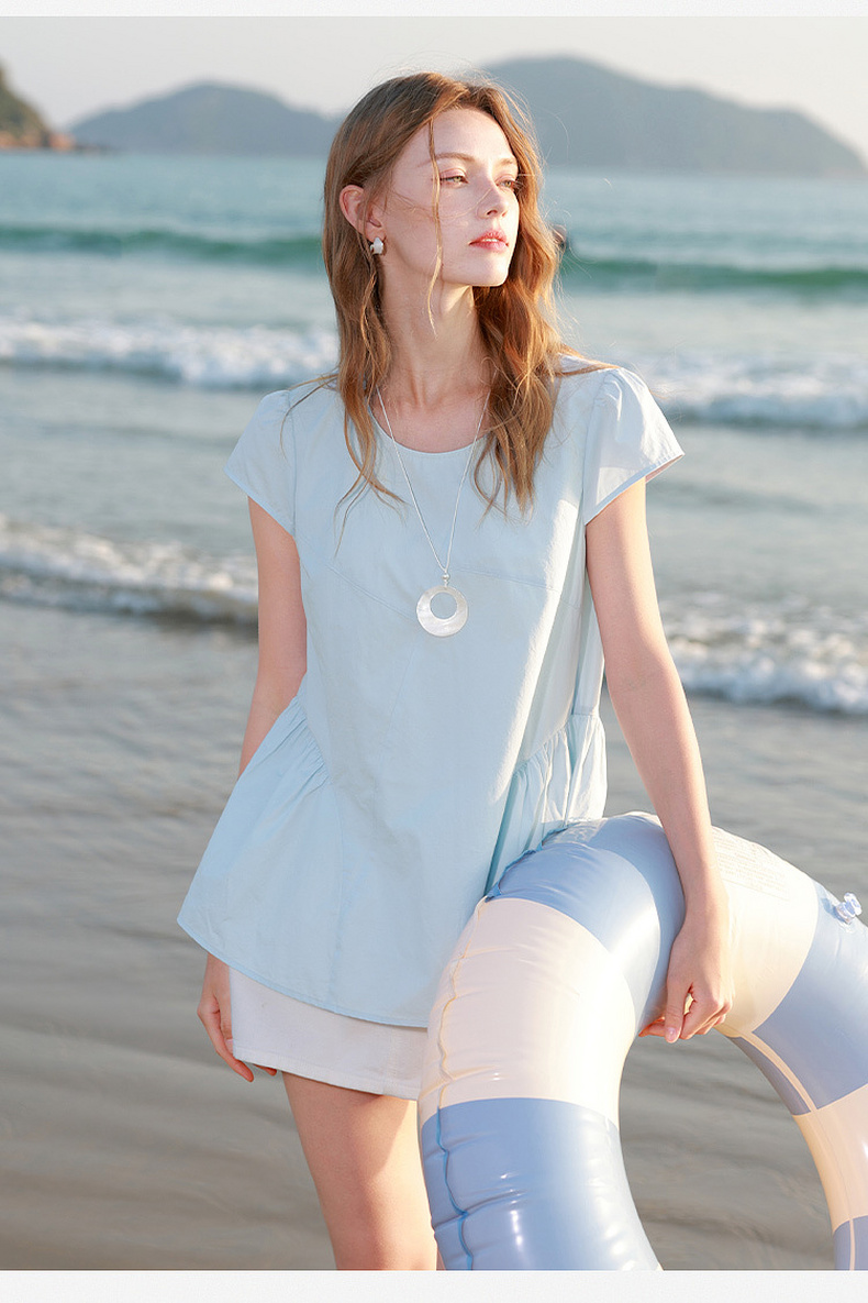 【100棉】三彩2026春季新款圆领短袖娃娃衫衬衣套头小衫宽松M
