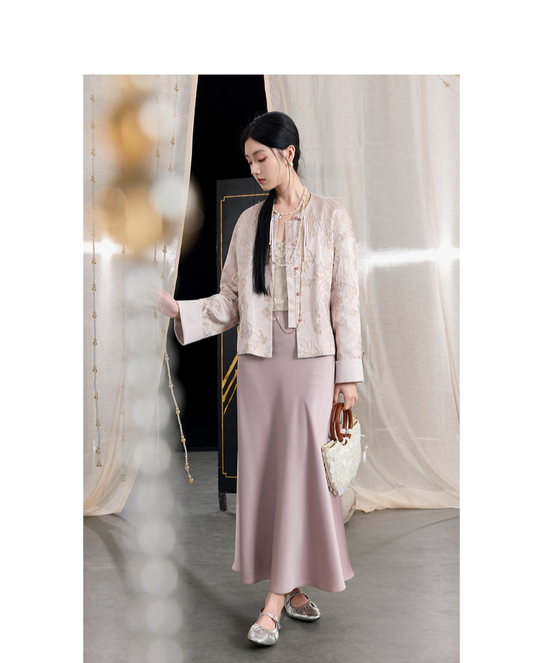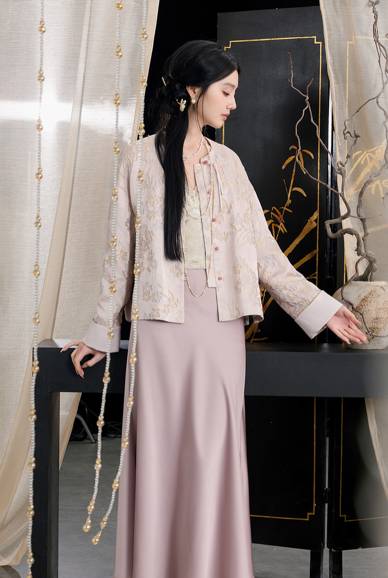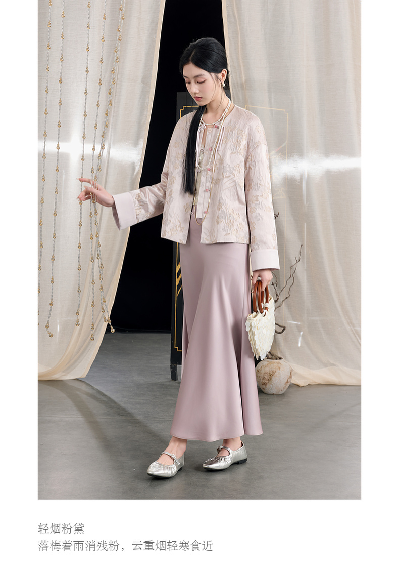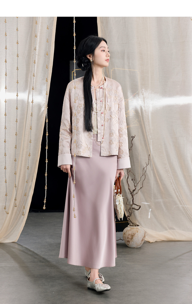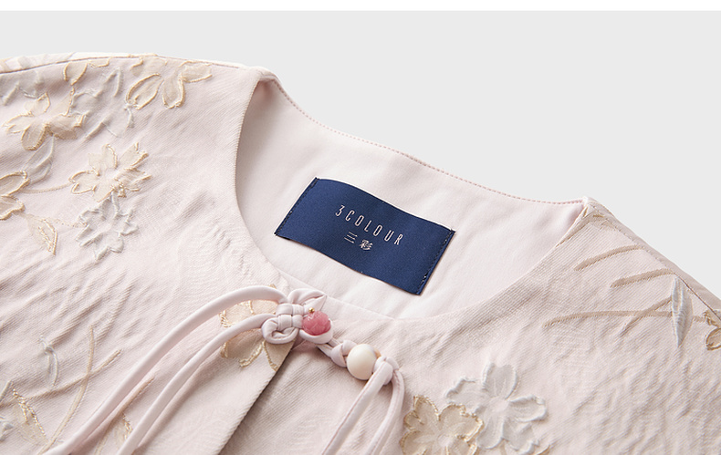 三彩【轻烟粉黛】2025秋季新款提花外套圆领盘扣开衫宽松中式C