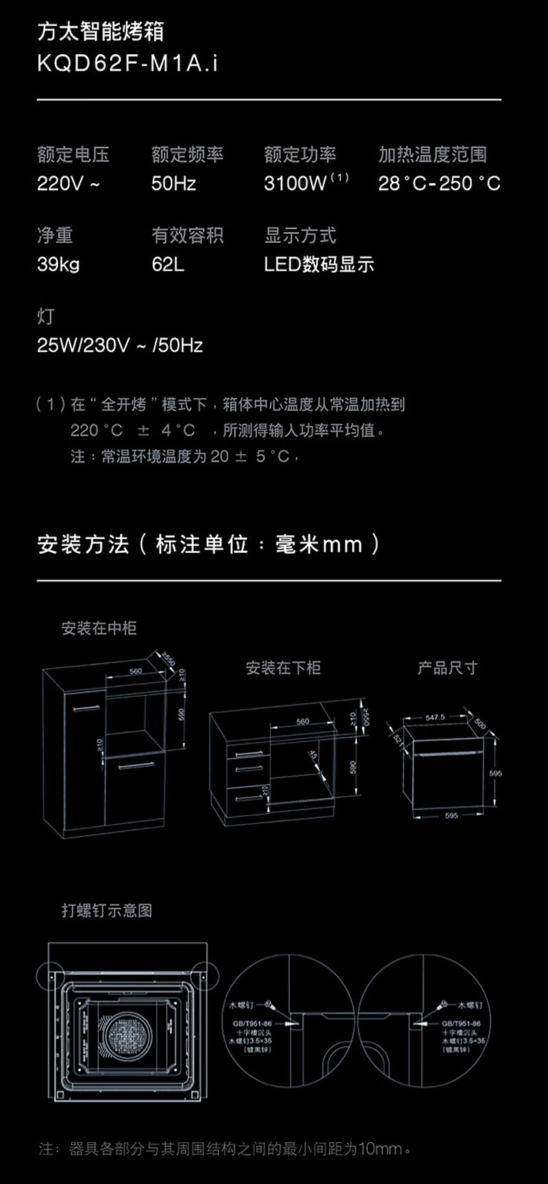 方太/烤箱/KQD62F-M1A.i/烤箱家用烘焙嵌入式多功能智能触控电烤箱62L