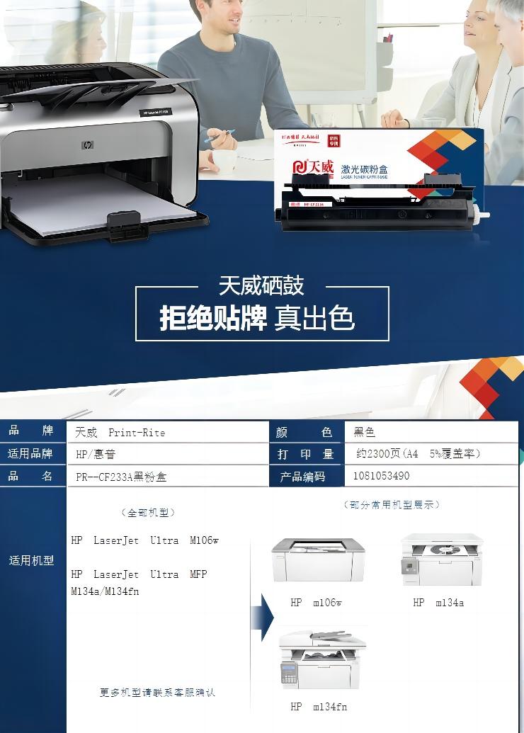 天威 CF233A粉盒 33A适用惠普HP LaserJet Ultra M106w MFP M134a M134fn 打印机硒鼓 墨粉盒