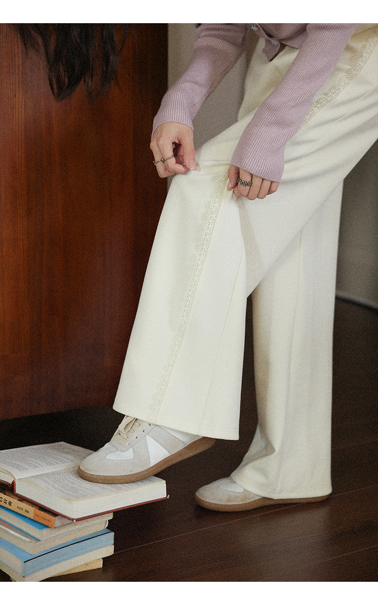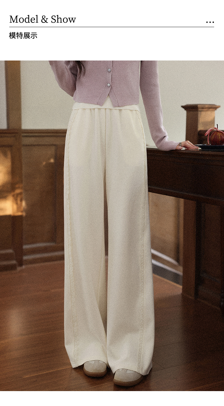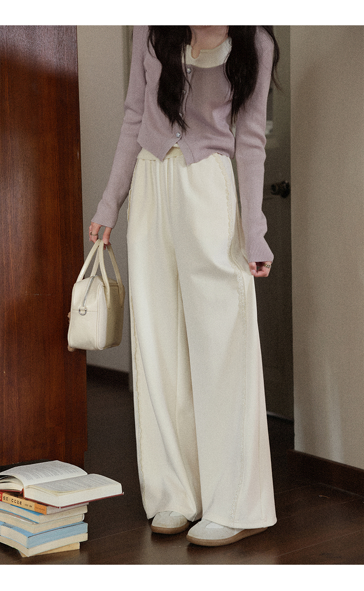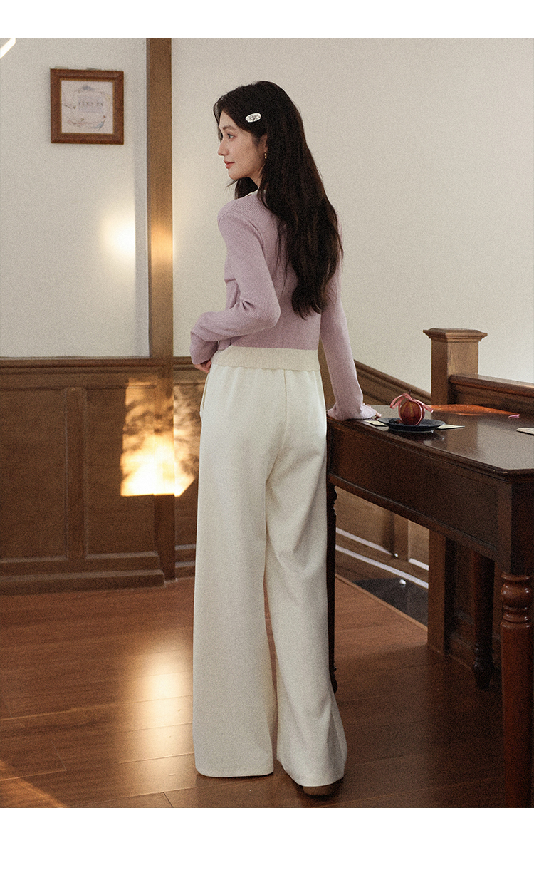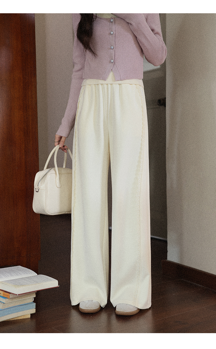 鹿向南「软糯糯」米白色休闲裤女早秋新款高腰直筒宽松长款阔腿裤
