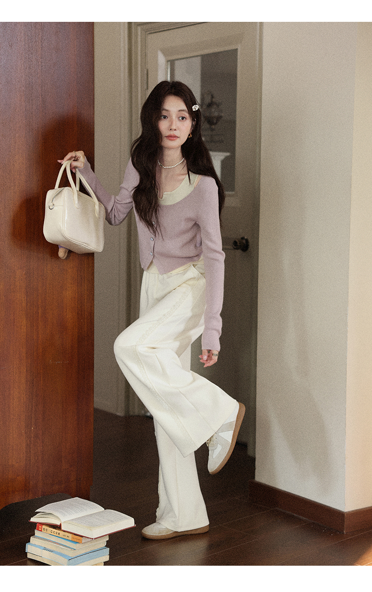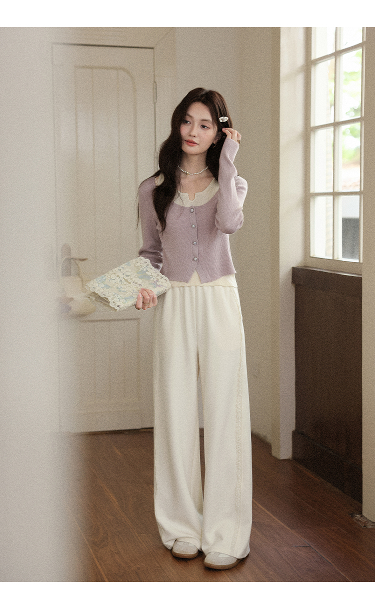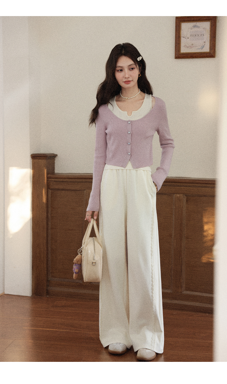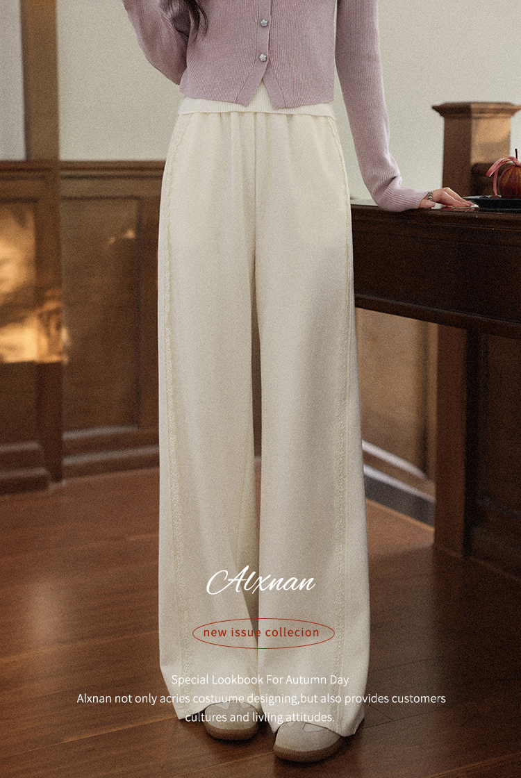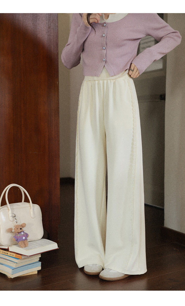 鹿向南「软糯糯」米白色休闲裤女早秋新款高腰直筒宽松长款阔腿裤