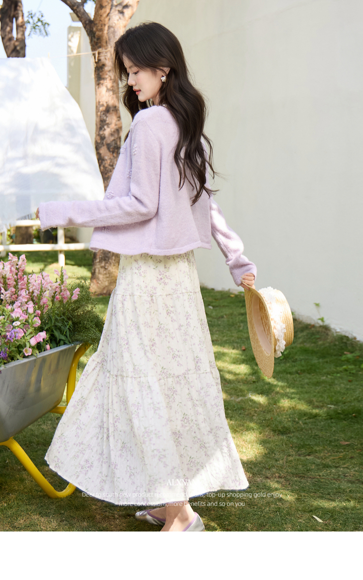 鹿向南「春野碎花」杏色碎花半身裙春季新款时尚修身高腰A字裙女