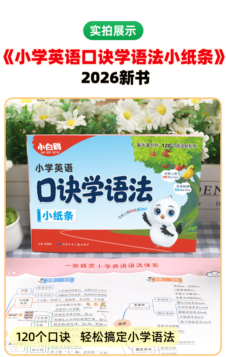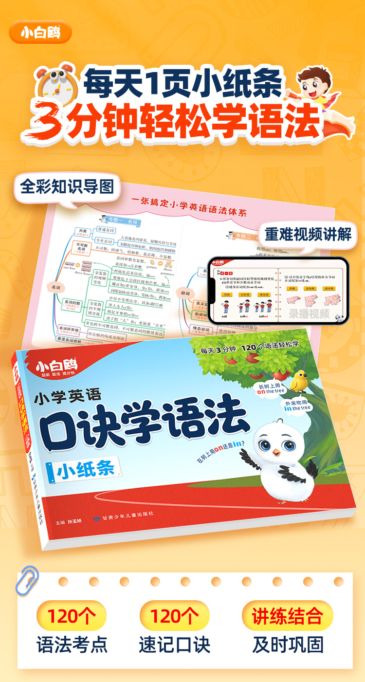 2026万唯小白鸥英语语法小纸条口诀助记知识点小学通用56年级每日一练词汇知识点提前学汇总专项训练重难视频讲解公式法速记