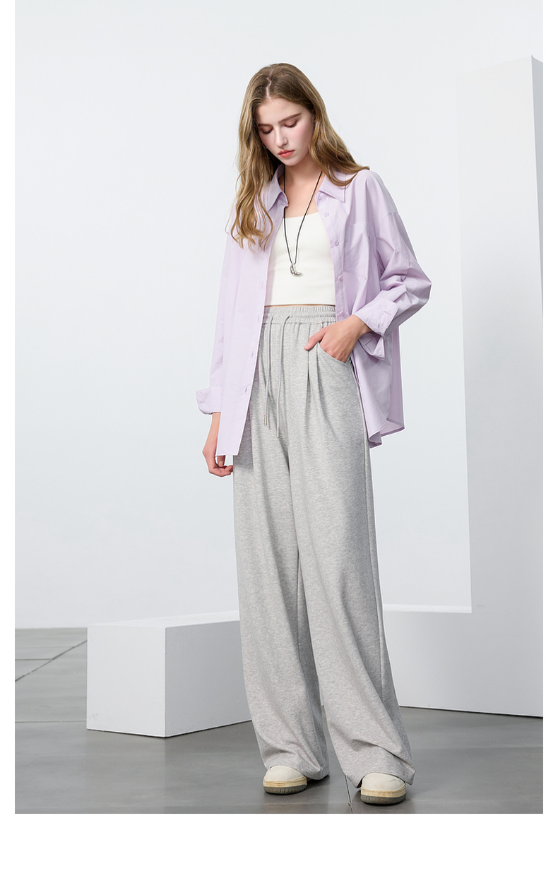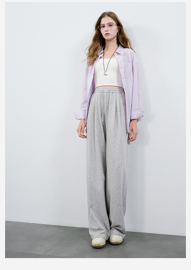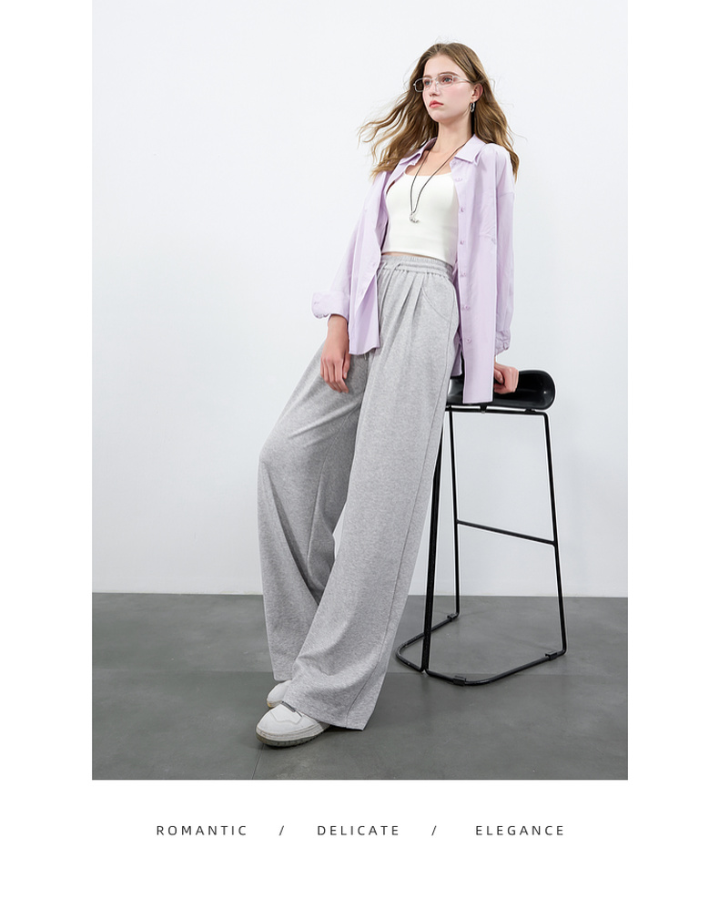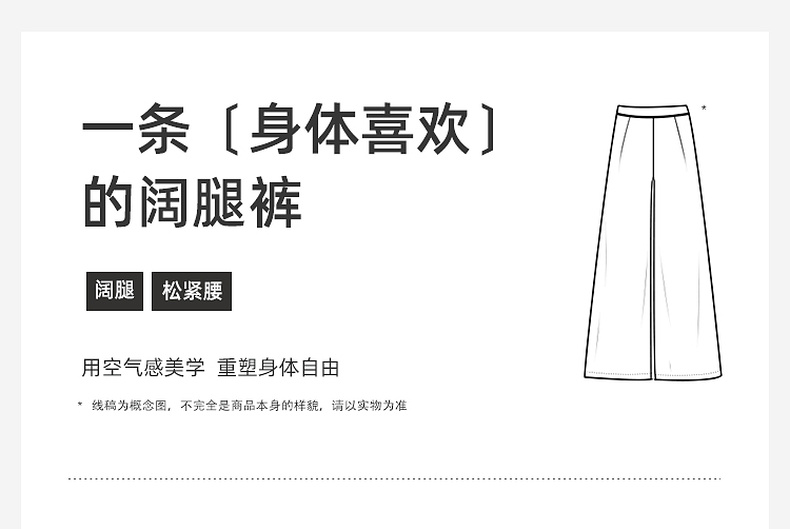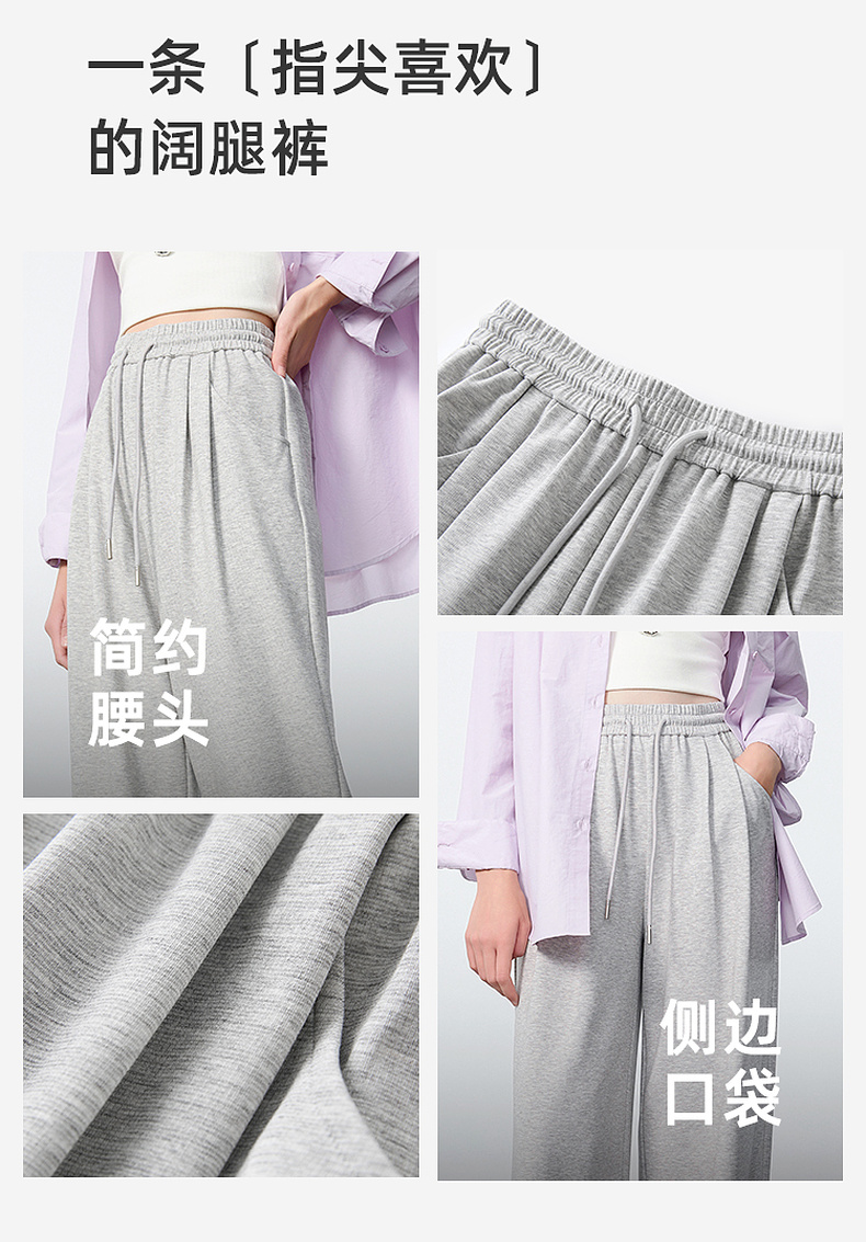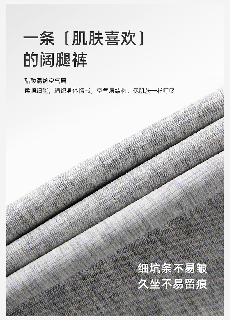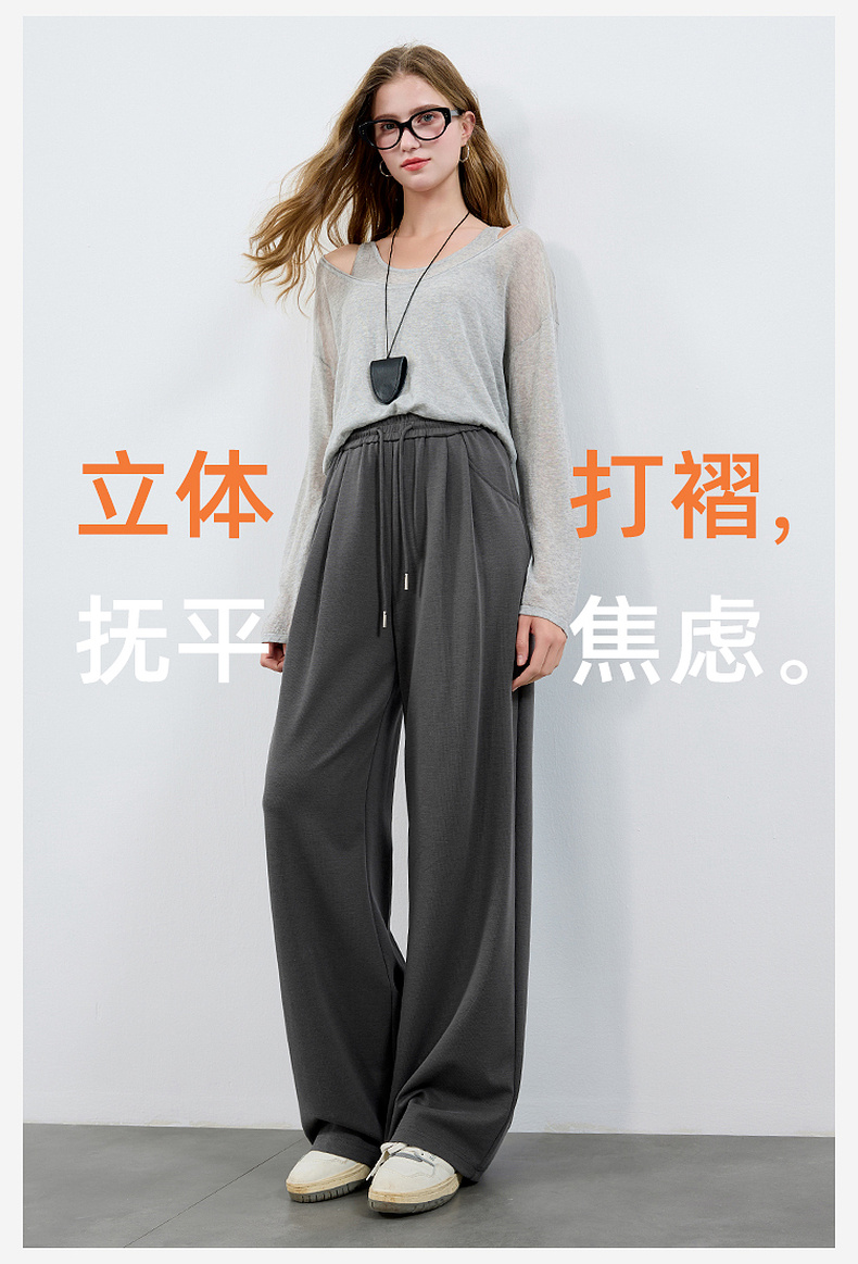 三彩2025春季新款休闲裤松紧高腰空气层宽松窄版阔腿裤长裤M