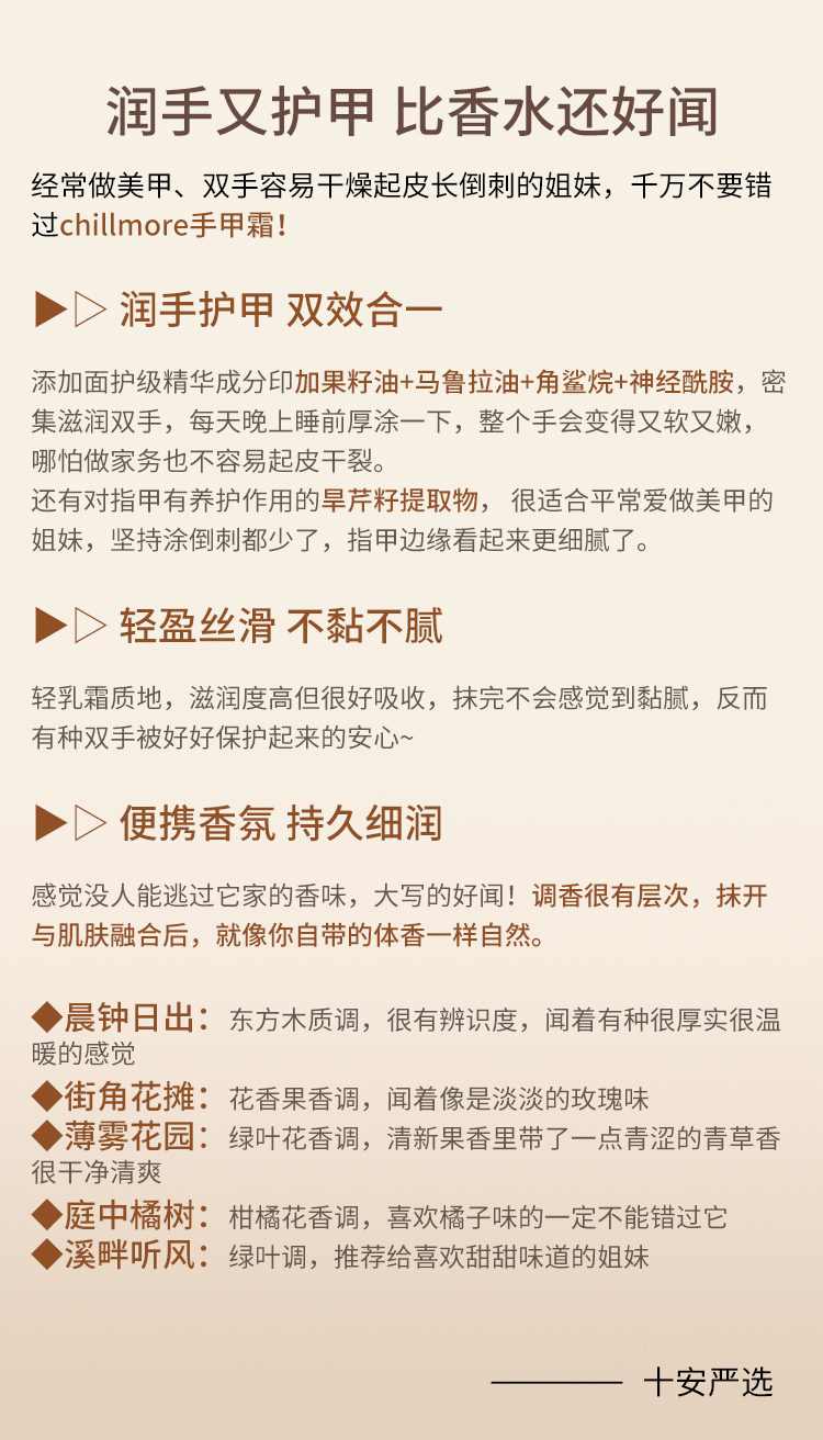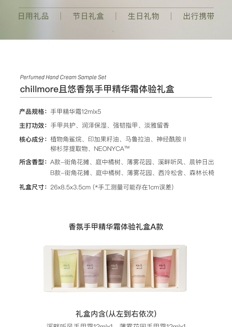 【香氛手霜】 chillmore/且悠 香氛手甲精华霜/体验礼盒