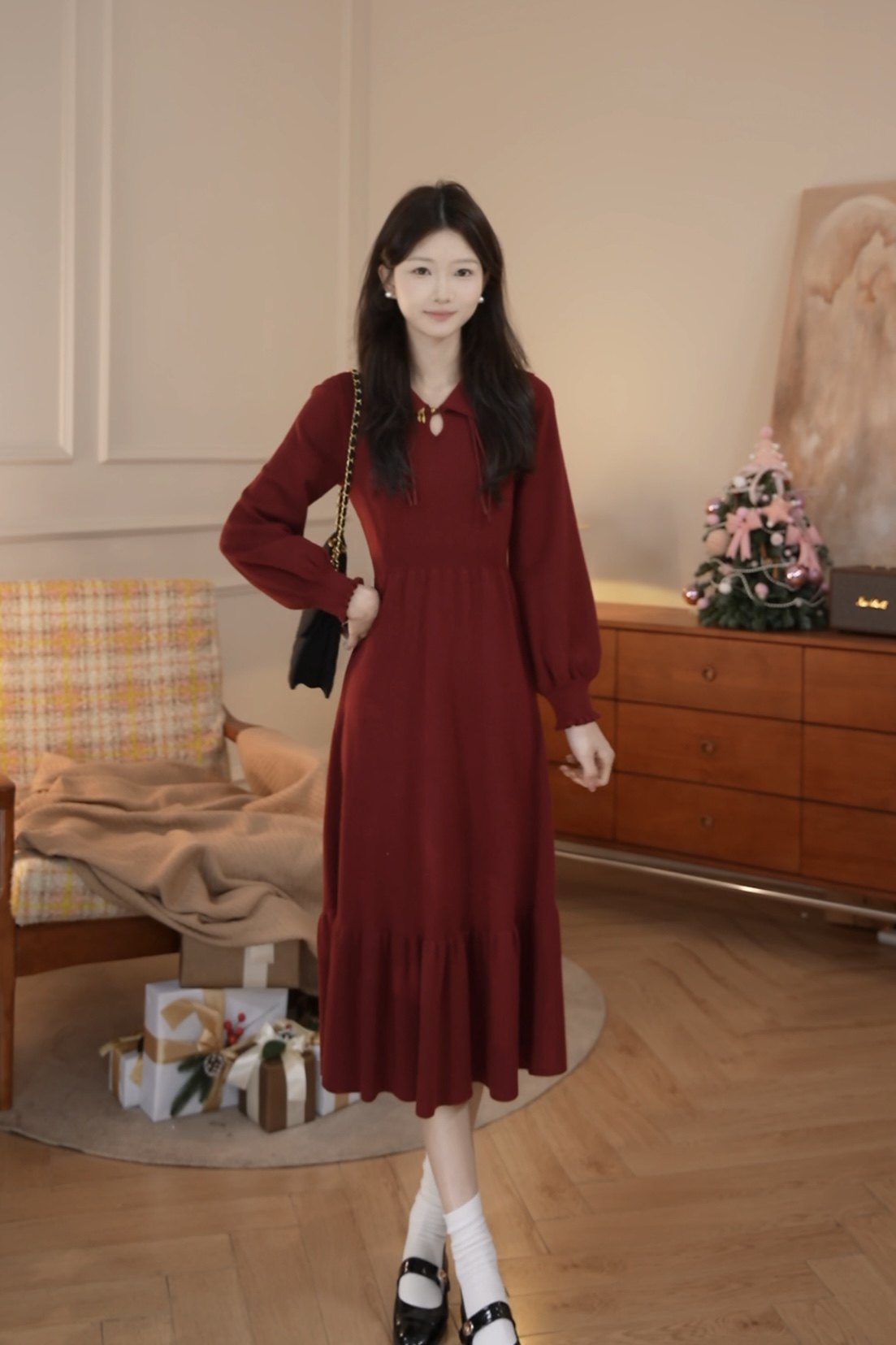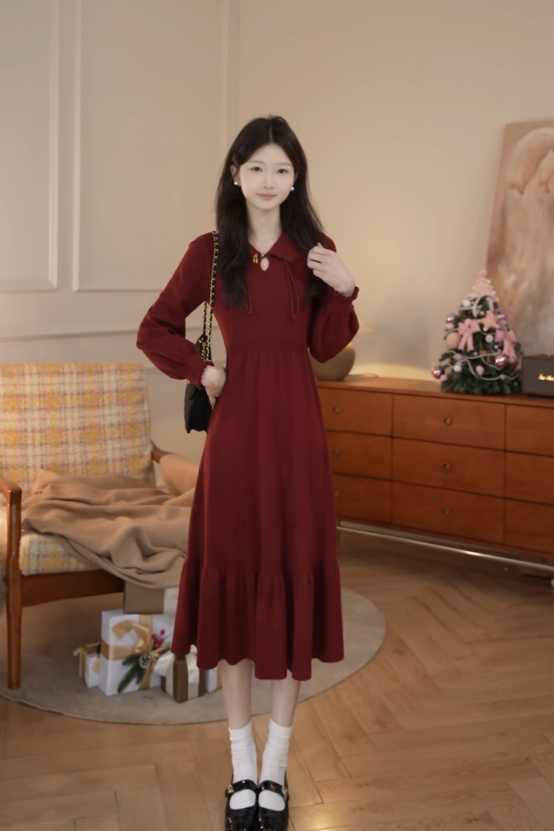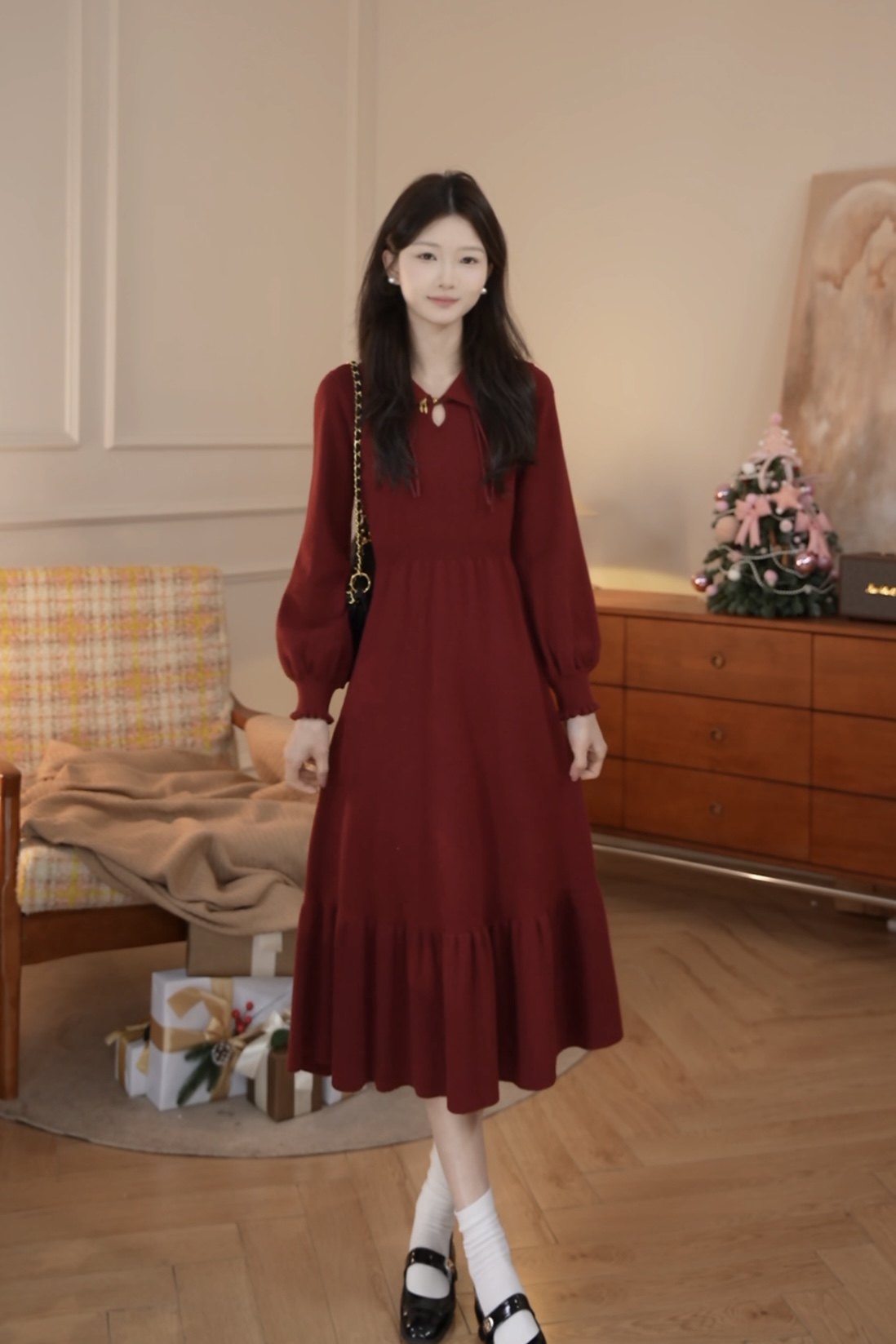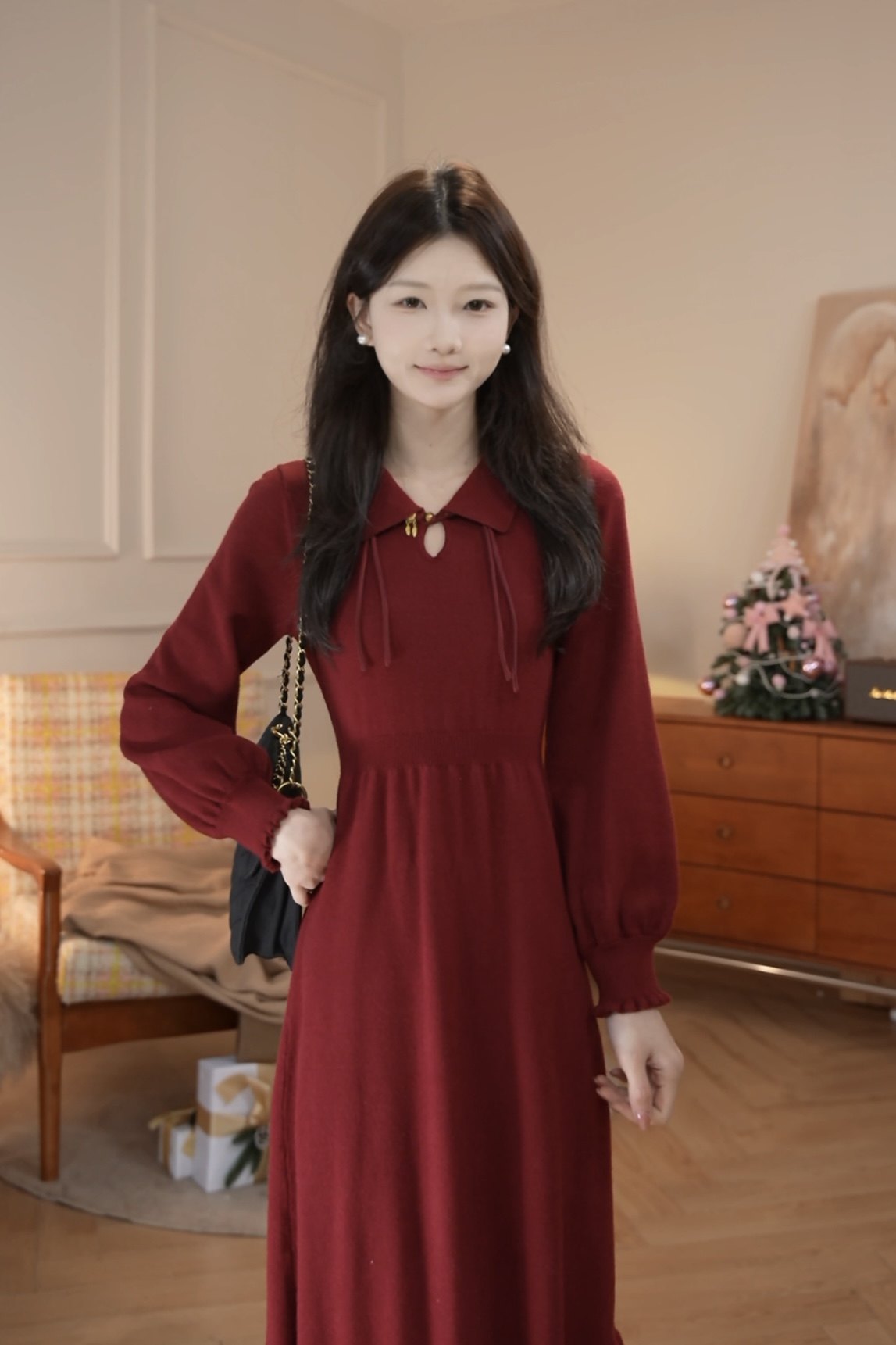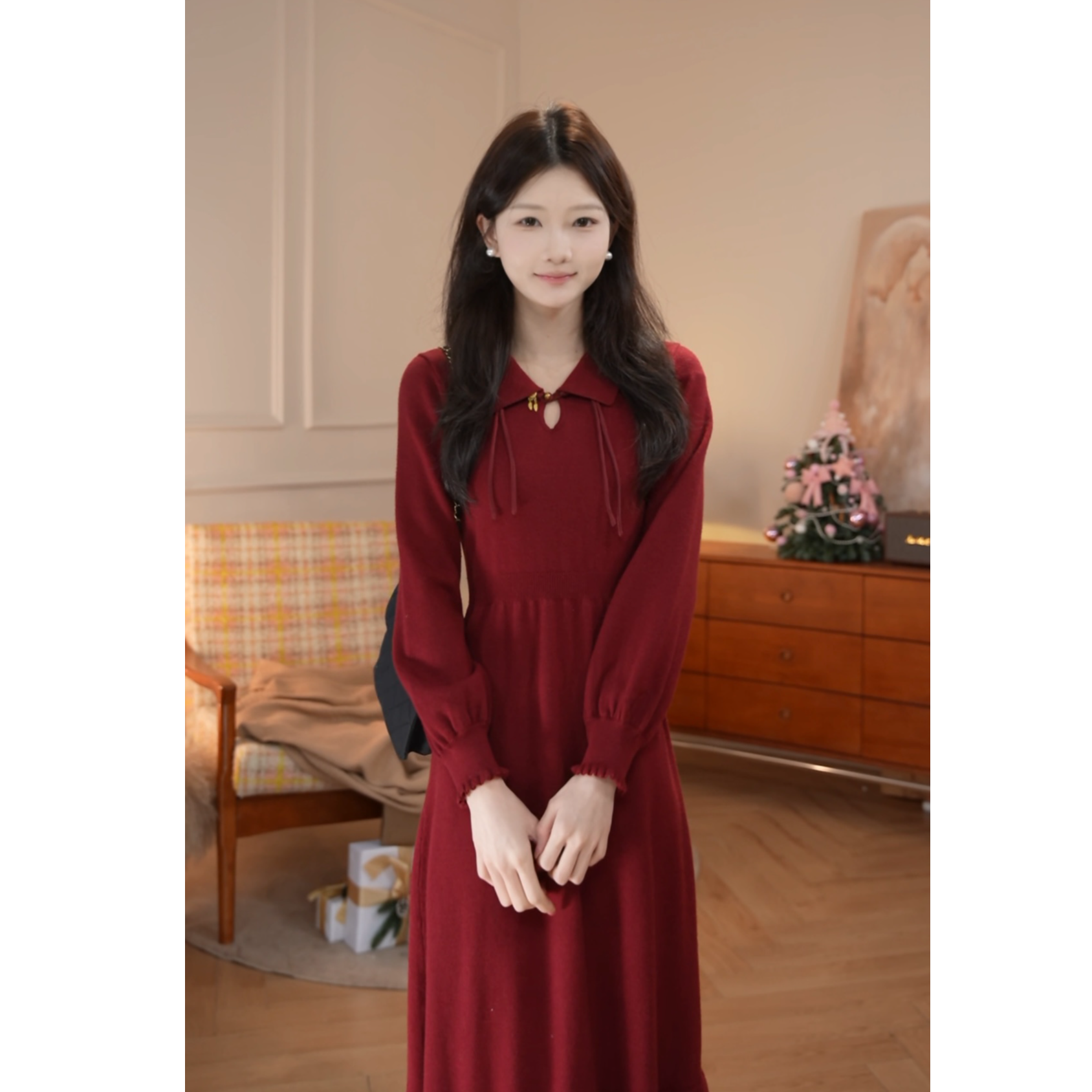 鹿向南「昭昭如愿」新中式国风气质高级感女春季针织长袖连衣裙