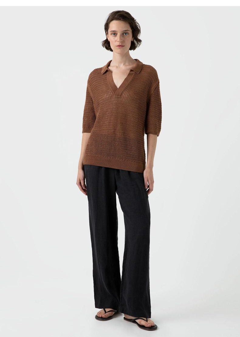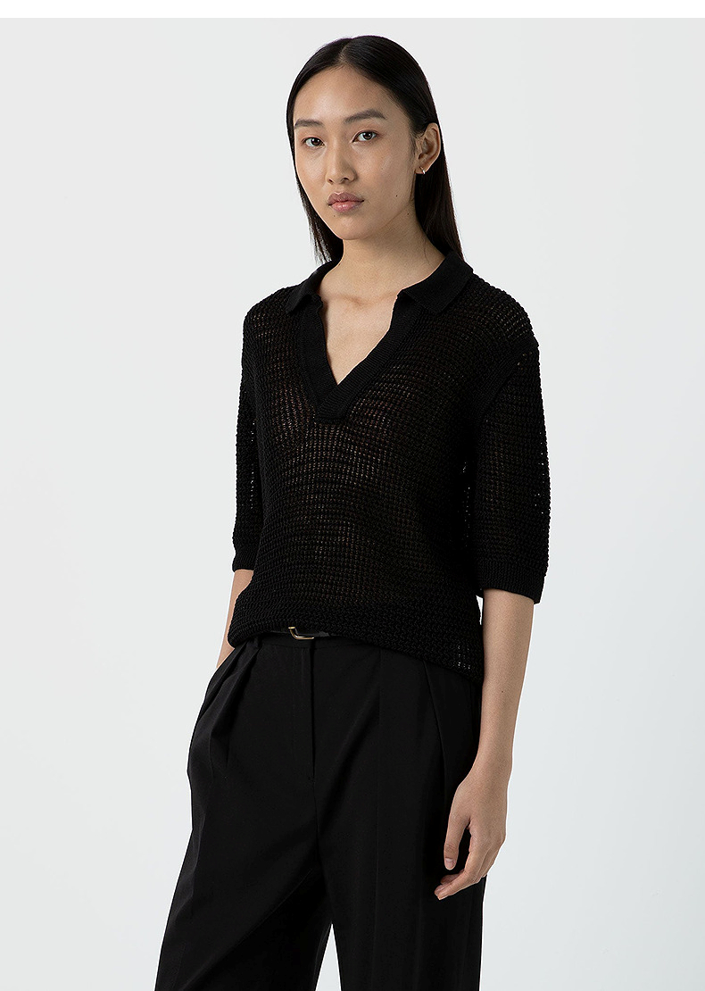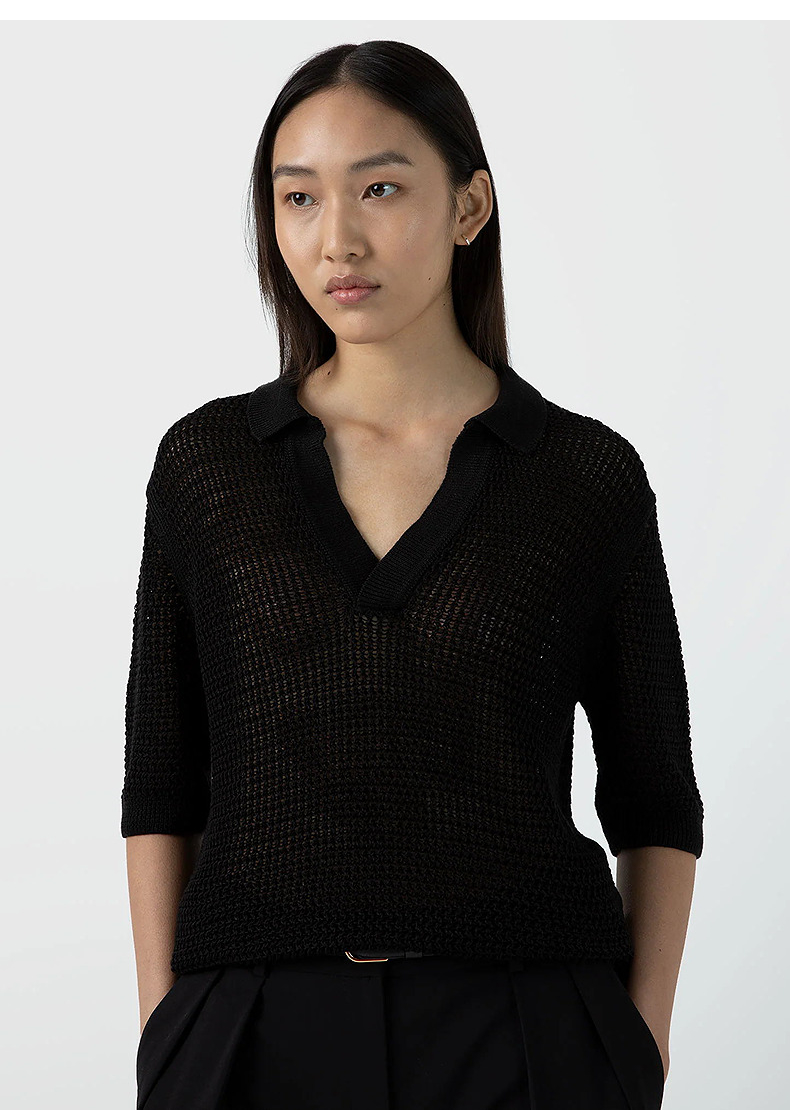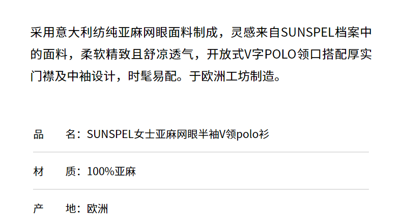【亚麻系列】SUNSPEL女士春夏亚麻网眼V领半袖Polo衫