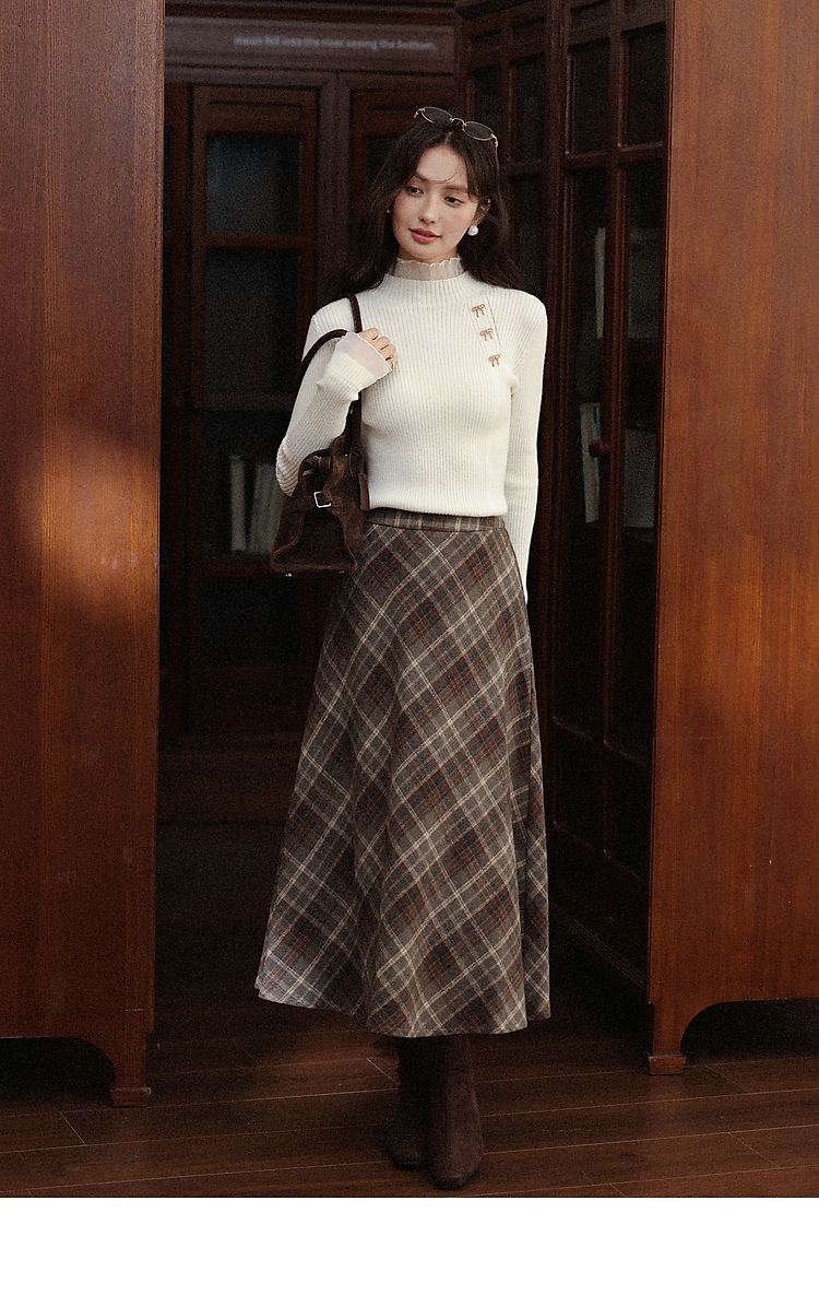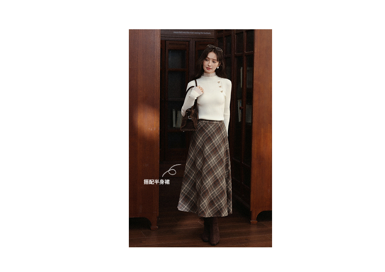 【65折秒杀】鹿向南「水中芙蓉」法式半高领针织衫女秋荷叶边修身内搭打底上衣L58608