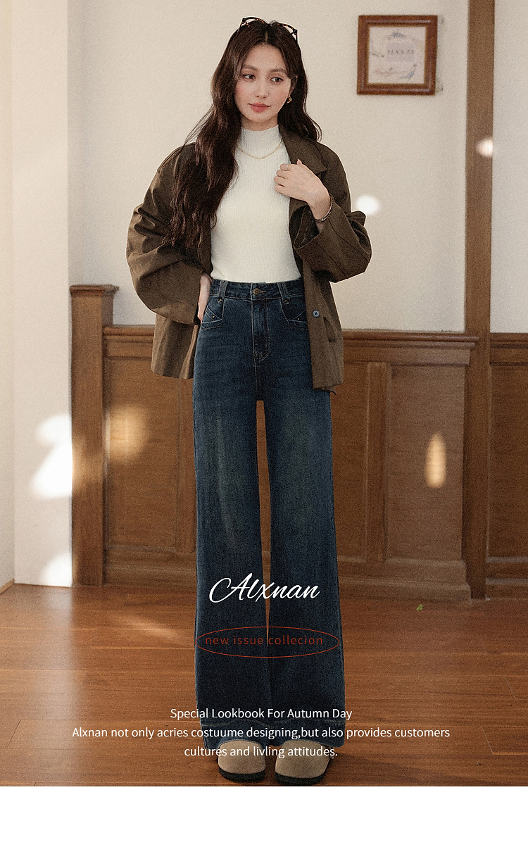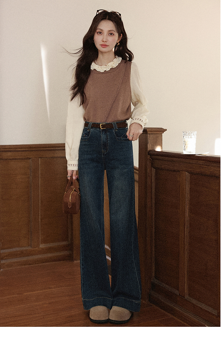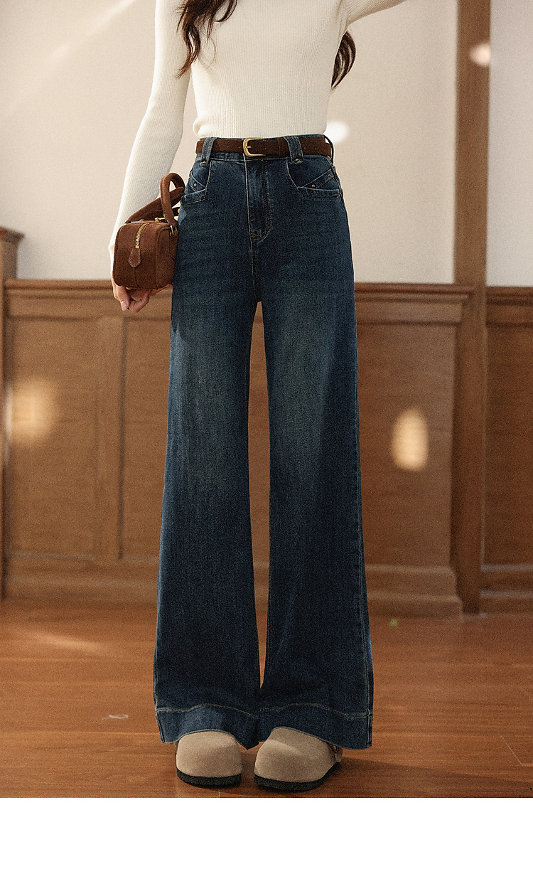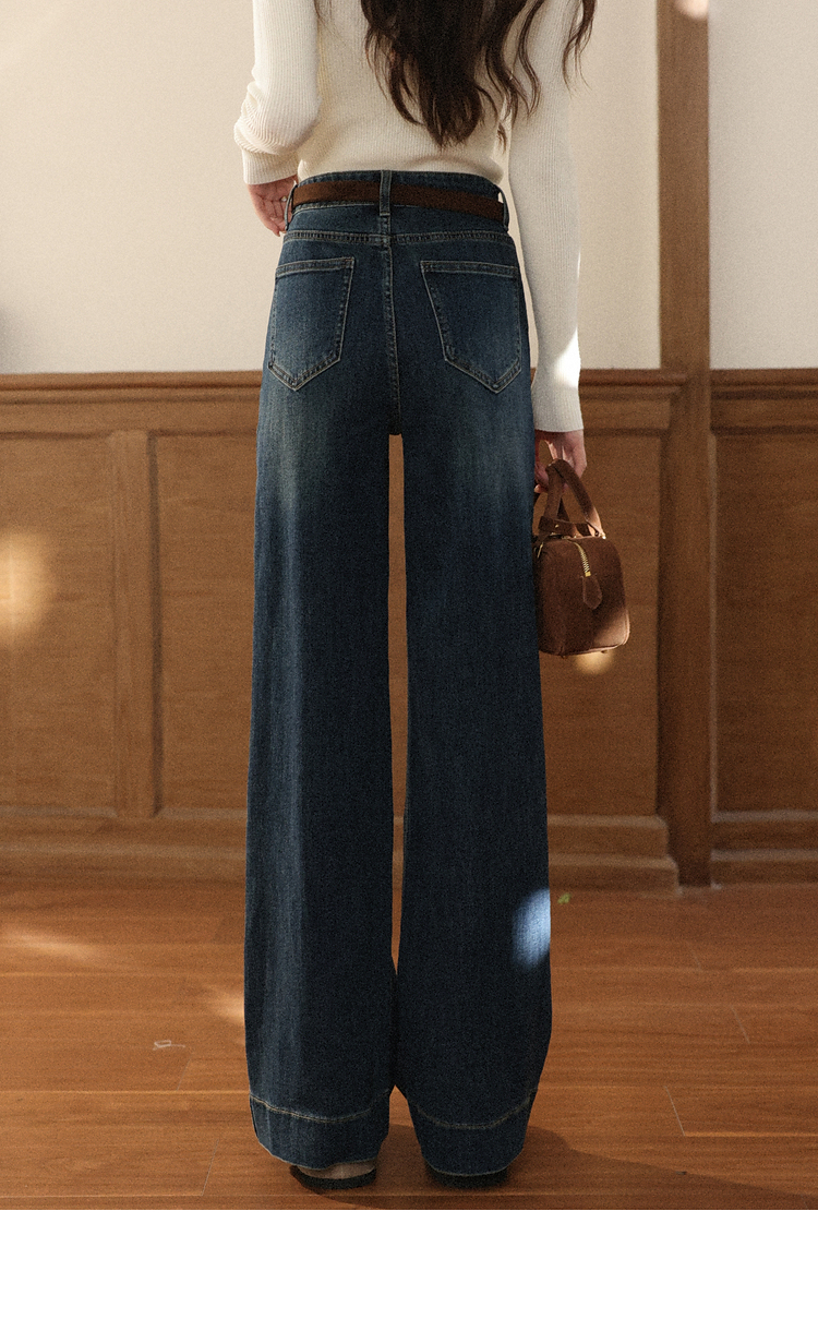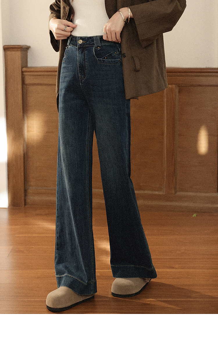 鹿向南「秋月假日」蓝色直筒阔腿牛仔裤秋季新款通勤显瘦长裤女士