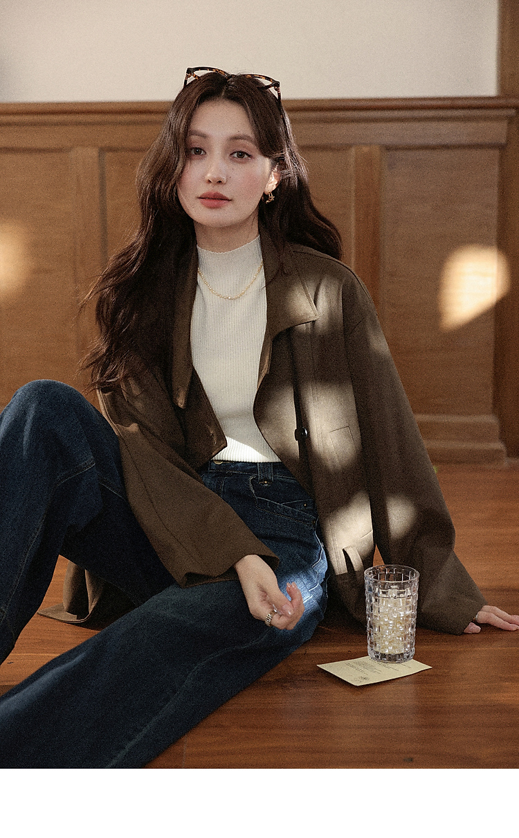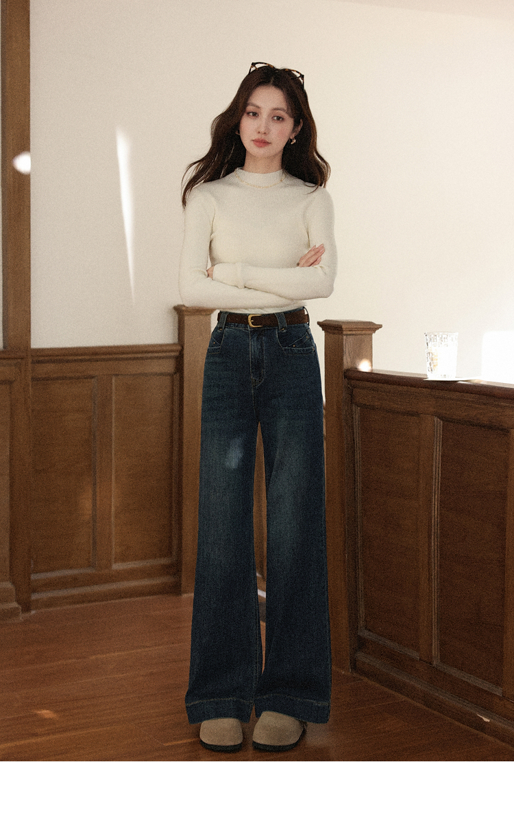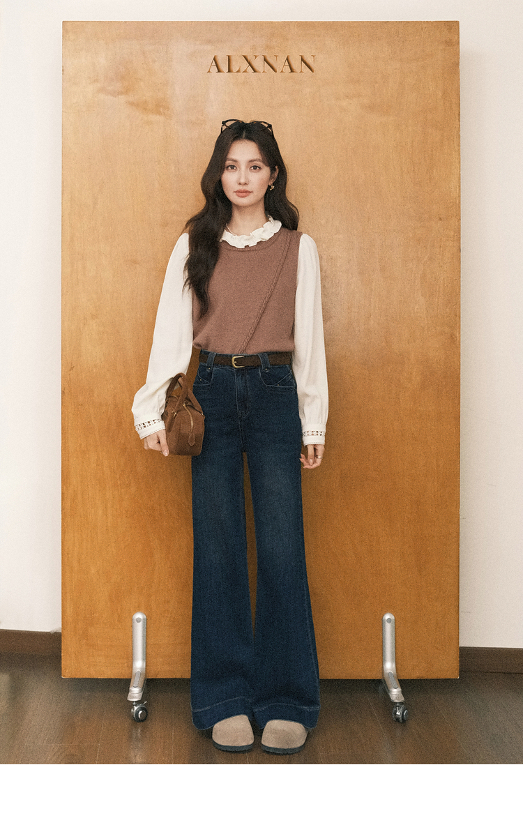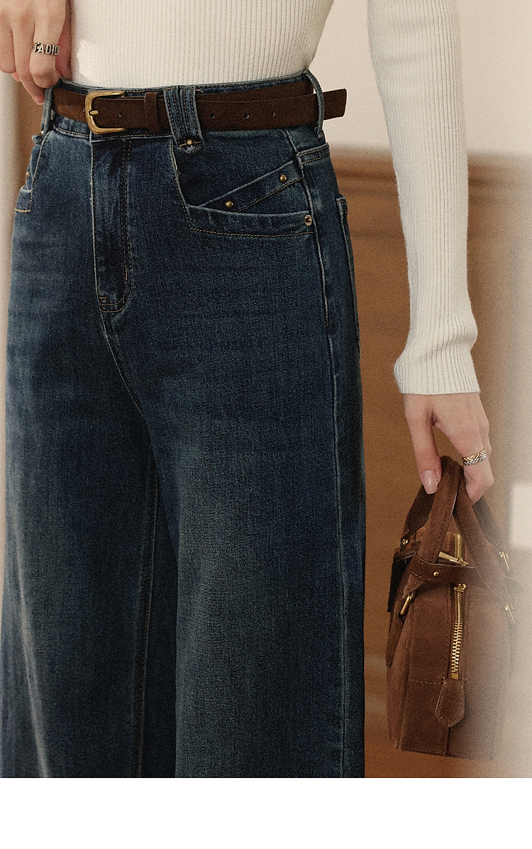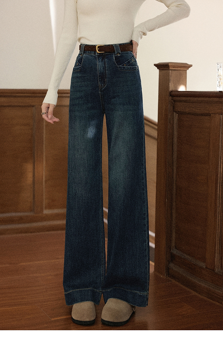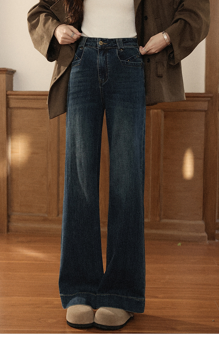 鹿向南「秋月假日」蓝色直筒阔腿牛仔裤秋季新款通勤显瘦长裤女士